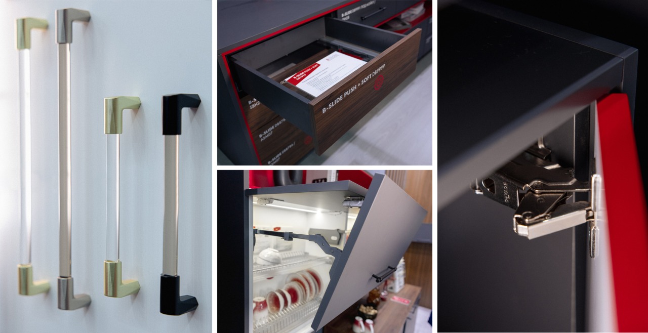 На своём стенде помимо легендарных продуктов и хитов ассортимента BOYARD представил новинки прогрессивной функциональной фурнитуры и решений для декора и дизайна: подъёмные механизмы, направляющие скрытого монтажа B-SLIDE и системы выдвижения СТАРТ с опцией PUSH+SOFT, обновлённый ассортимент прогрессивных петель EVO, а также новые ручки, созданные командой российских дизайнеров для «наших» мебельных производителей.