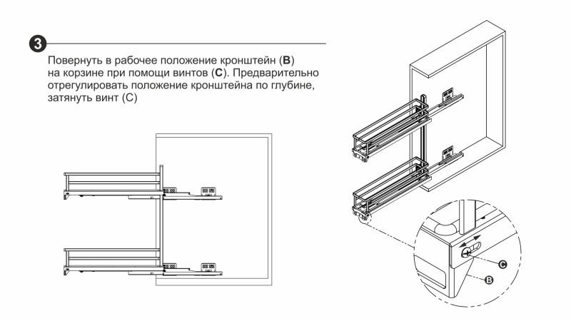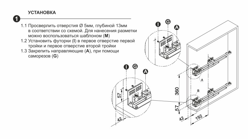 В комплекте с изделием поставляется специальный шаблон присадочных отверстий, который поможет точно определить место для крепления корзины. Шаблон является дополнением к основной инструкции и позволяет легко и быстро нанести разметку для установки сетчатого наполнения в базу кухонного гарнитура.