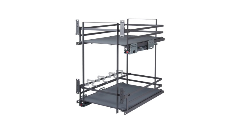 Корзина шириной 300 мм и 400 мм, имеет 2 уровня хранения со сплошным дном и антискользящей поверхностью.
