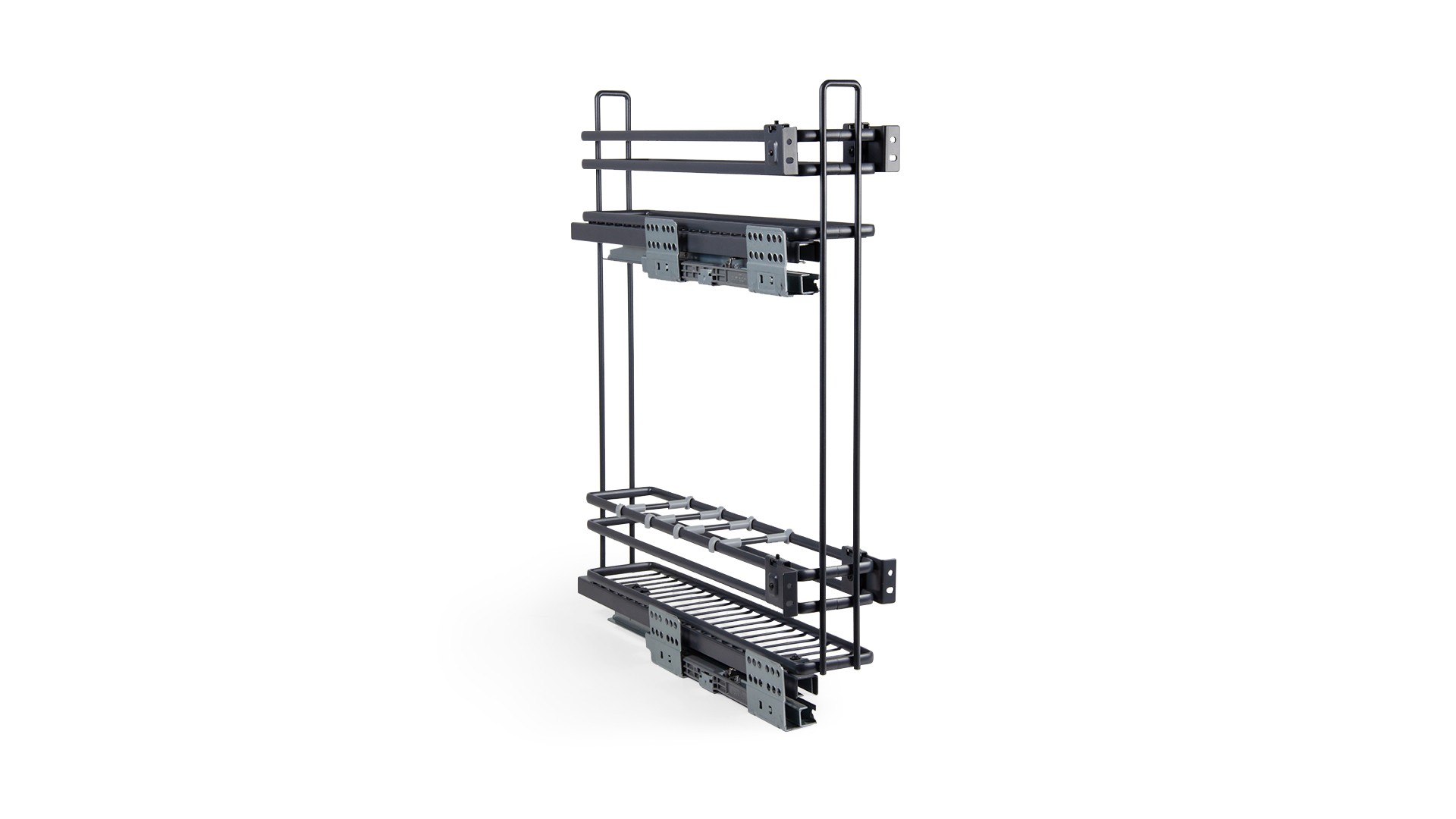 АУРА KR36 — это современная бутылочница с левосторонним креплением в стильном плоском прутке для удобного хранения ёмкостей различной высоты в модулях шириной 150 или 200 мм.