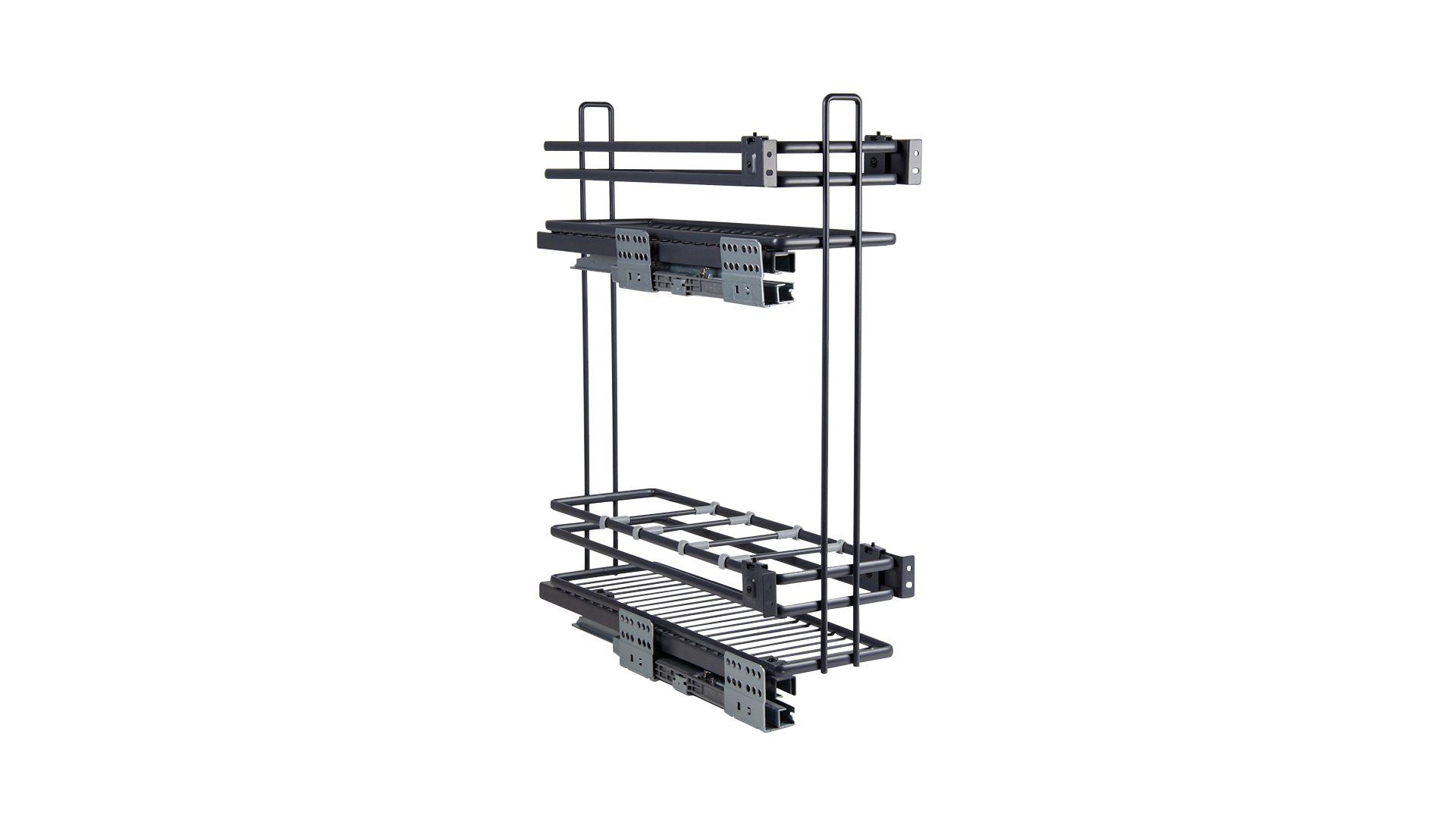Надёжные направляющие полного выдвижения с амортизацией и синхронизацией обеспечат стабильное, плавное выдвижение. Брендированные декоративные накладки на направляющие создадут стильный и лаконичный вид.