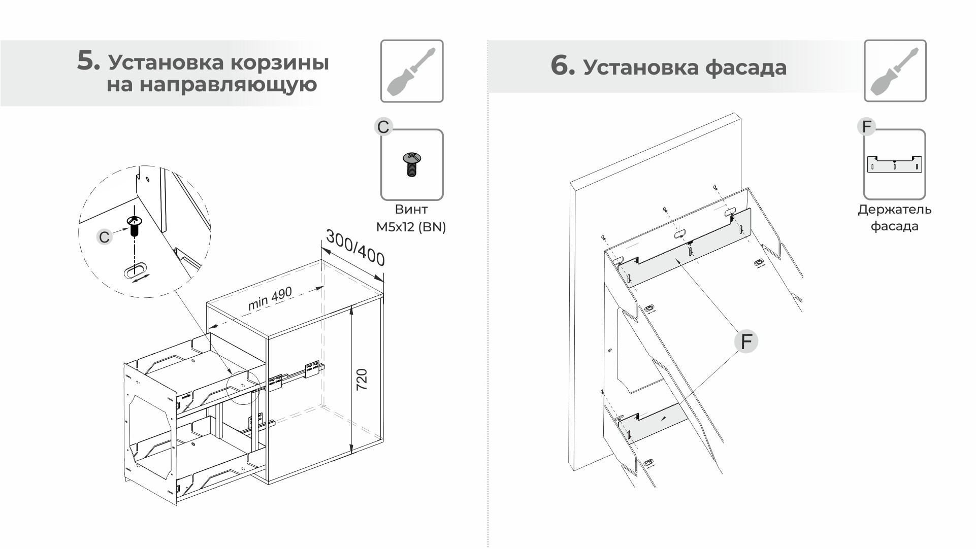 - Держатель фасада в комплекте