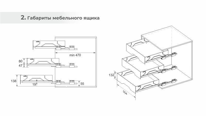 Выдвижной ящик впишется в пространство нижней кухонной базы, тумбы в ванной комнате или прихожей, в отдельно стоящие модули или пеналы за распашными фасадами. Предназначен для плит толщиной 16 и 18 мм.