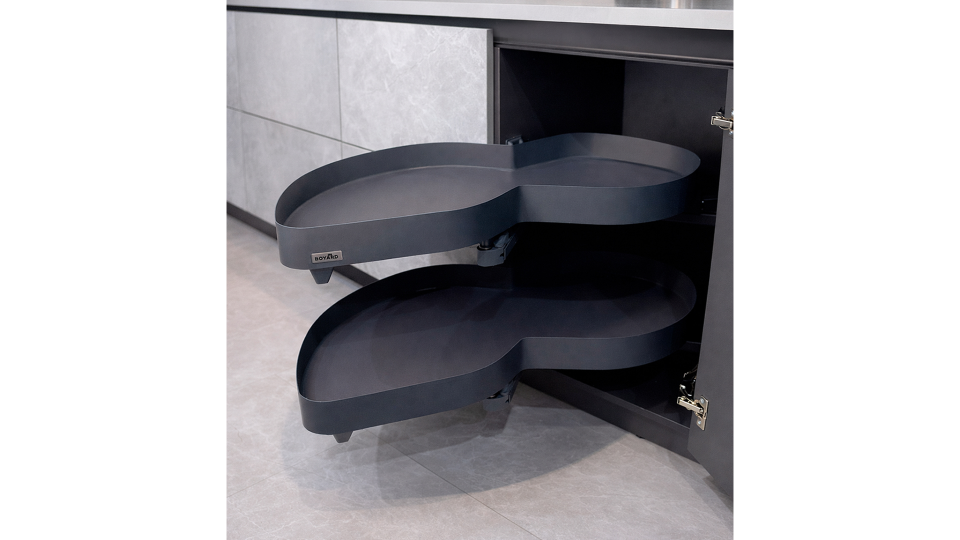 «Волшебный уголок» Lotus – это стильная и эргономичная многофункциональная корзина, предназначенная для хранения кухонной утвари: посуды, кастрюль, бытовой техники и пр. в угловых модулях размером 900-1000 мм. Модель представлена в двух вариантах: для левых и правых угловых шкафов.