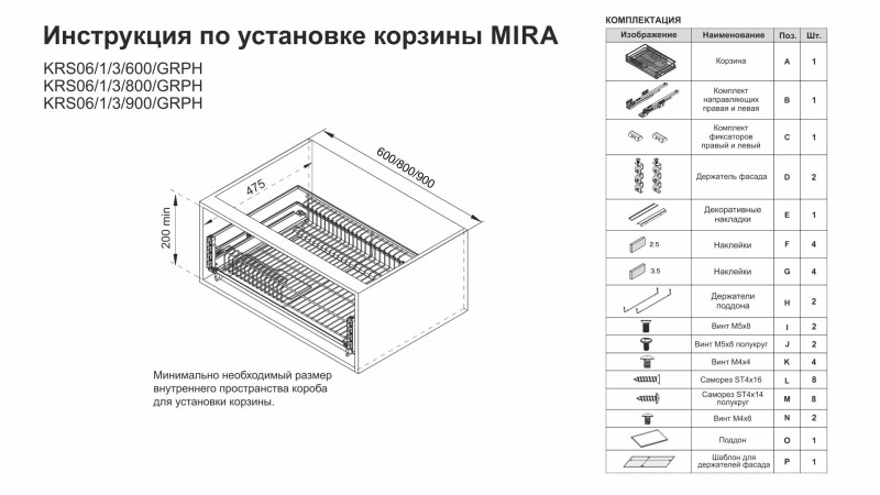 Выдвижная корзина-сушка МИРА KRS06/1/3/600/GRPH