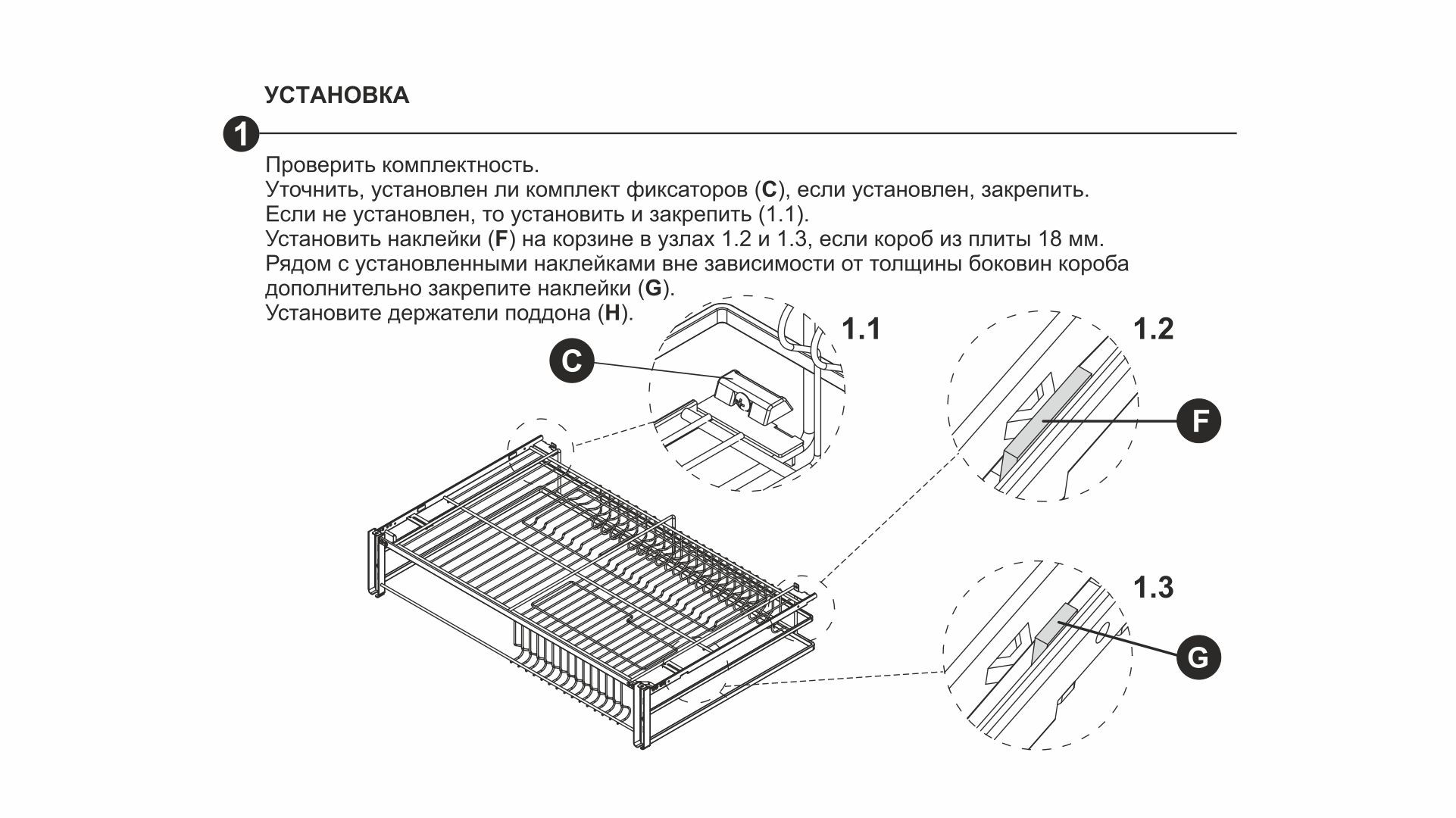 Для бесшумной работы изделия предусмотрены специальные демпфирующие вставки, прикрепить которые можно в места контакта корзины с выступами направляющих.