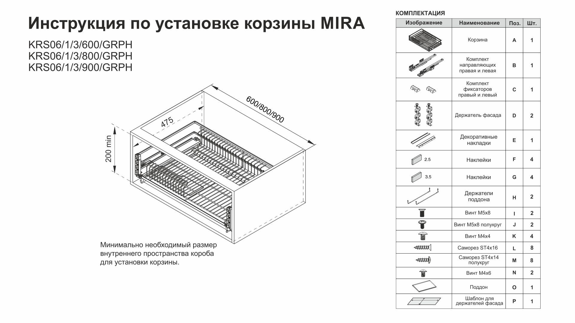 Выдвижная корзина-сушка MIRA KRS06/1/3/900/GRPH