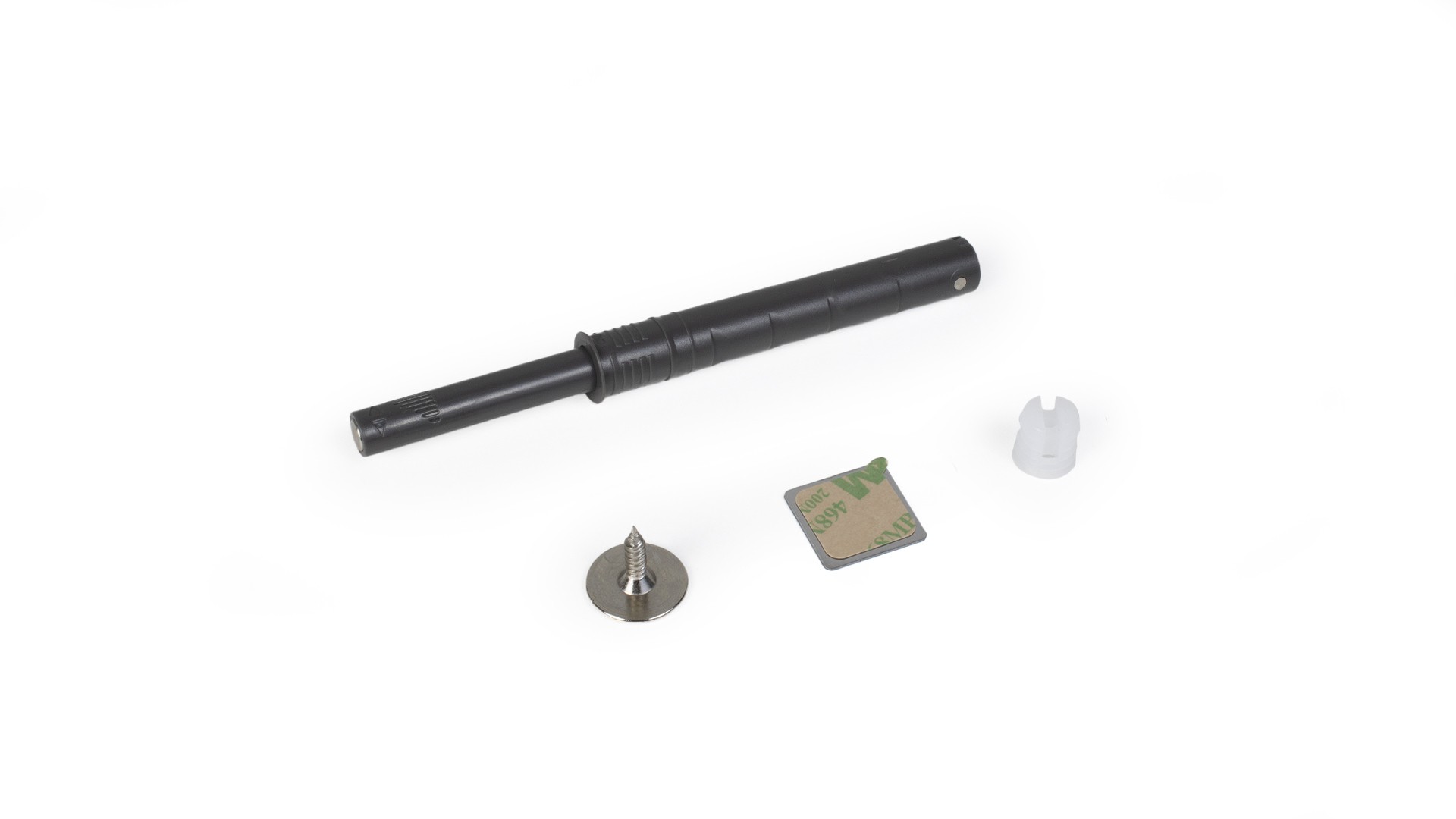 AMF15 – магнитный толкатель для врезного и накладного монтажа для установки на распашные фасады, фасады с открыванием вверх и фасады с открыванием вниз в рамках создания мебели с открытием от нажатия.