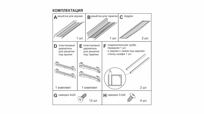 - 2 комплекта пластиковых держателей нижнего и верхнего уровня