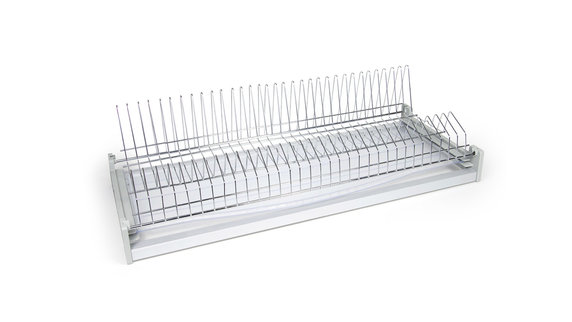 Особая форма прутков нижнего уровня позволяет по-настоящему удобно расположить в пространстве сушки большое количество посуды любого диаметра – от крошечных кофейных блюдец до габаритных сервировочных тарелок. При этом необязательно размещать посуду по центру, удобно ставить её и в дальние, и в ближние сектора сушки.