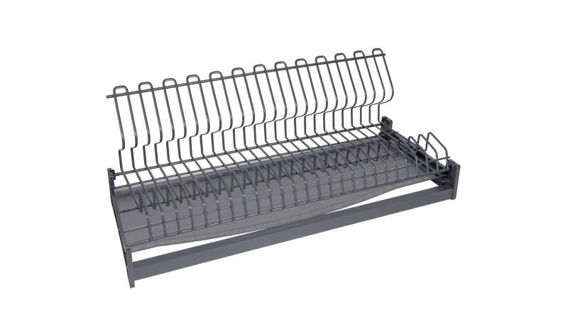 STUDIO FL 16 SU09 — сушка для посуды в верхнюю базу для мебели из плит толщиной 16 мм. Модель выполнена в современном дизайне из плоского стального прутка в нанопокрытии графитового цвета с эффектом самоочищения и водоотталкивания. Такое покрытие обеспечивает повышенную износостойкость, ударопрочность и устойчивость к коррозии.