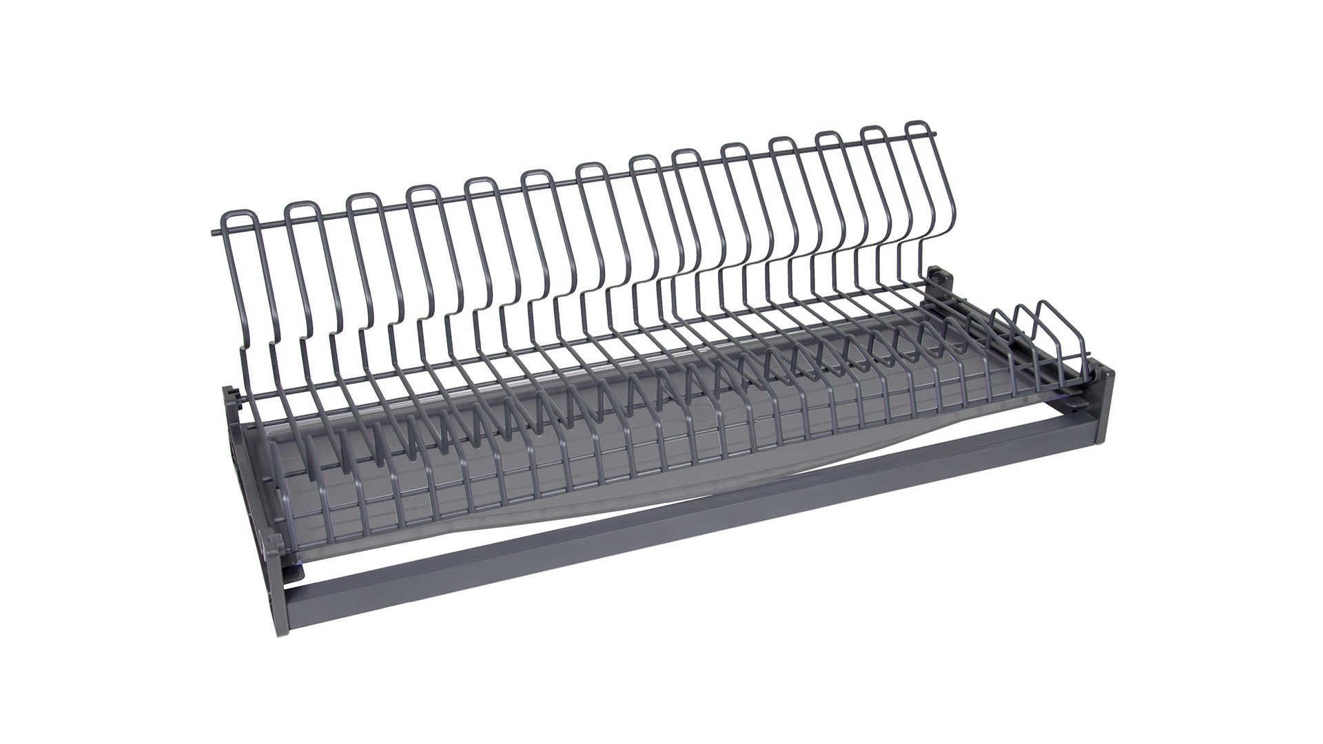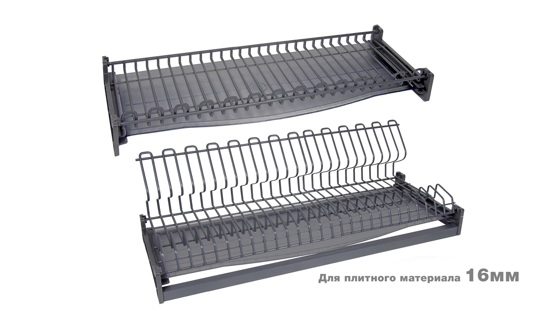 STUDIO FL 16 SU09 — сушка для посуды в верхнюю базу для мебели из плит толщиной 16 мм. Модель выполнена в современном дизайне из плоского стального прутка в нанопокрытии графитового цвета с эффектом самоочищения и водоотталкивания. Такое покрытие обеспечивает повышенную износостойкость, ударопрочность и устойчивость к коррозии.