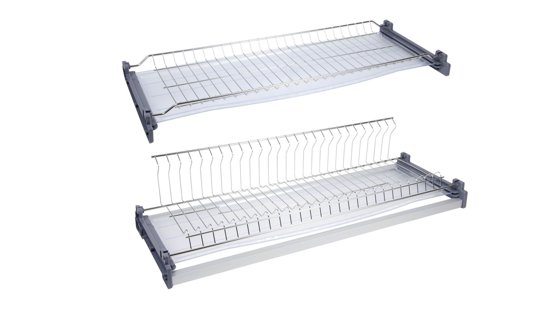 ГЛОРИЯ SU16 – сушка для посуды в верхнюю базу из прутковой нержавеющей стали для мебели из плит толщиной 16 мм. Модель монтируется в короб без малейших зазоров, как влитая. Более прочная фиксация сушки возможна за счёт крепления трубки к держателю на дополнительный саморез, находящийся под трубкой.