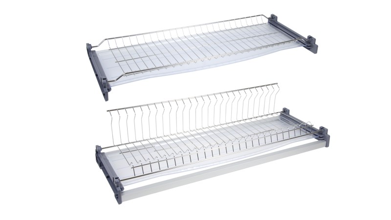 Сушка может быть полностью интегрирована с корпусом мебели. Пластиковые держатели нижнего яруса и алюминиевая трубка имеют специальный паз для установки задней стенки короба.