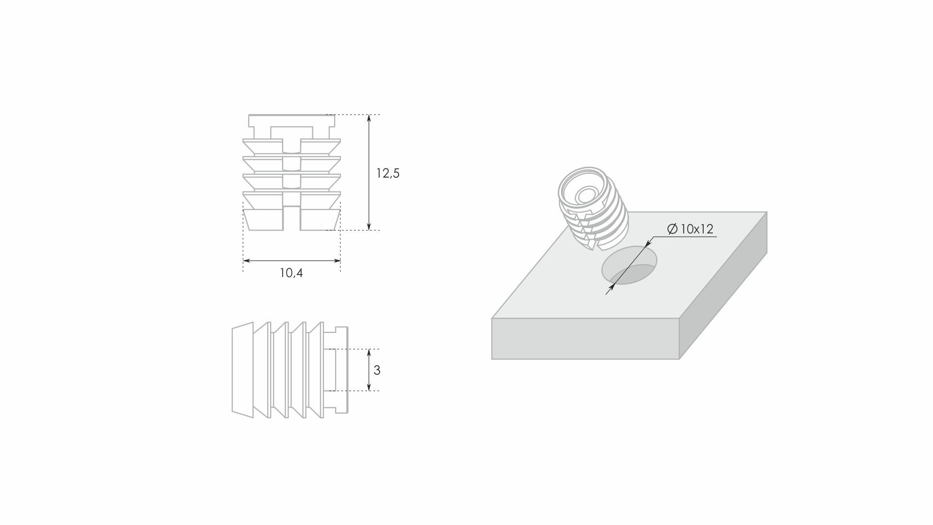 За счёт продуманной конструкции со специальными поперечными рёбрами, футорка будет надёжно закреплена в пласти изделия. F04 можно неоднократно использовать при сборке и разборке мебели без повреждения плиты, в ТОМ числе и в низкокачественном ДСП.