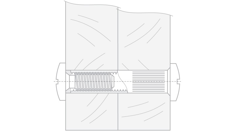 Стяжка удобно стягивает части изделия без необходимости их смещения; особенно актуальна при работе с фальш-коробом и при создании кухонь и столешниц в ограниченном пространстве, где нет удобного доступа к монтажному узлу.