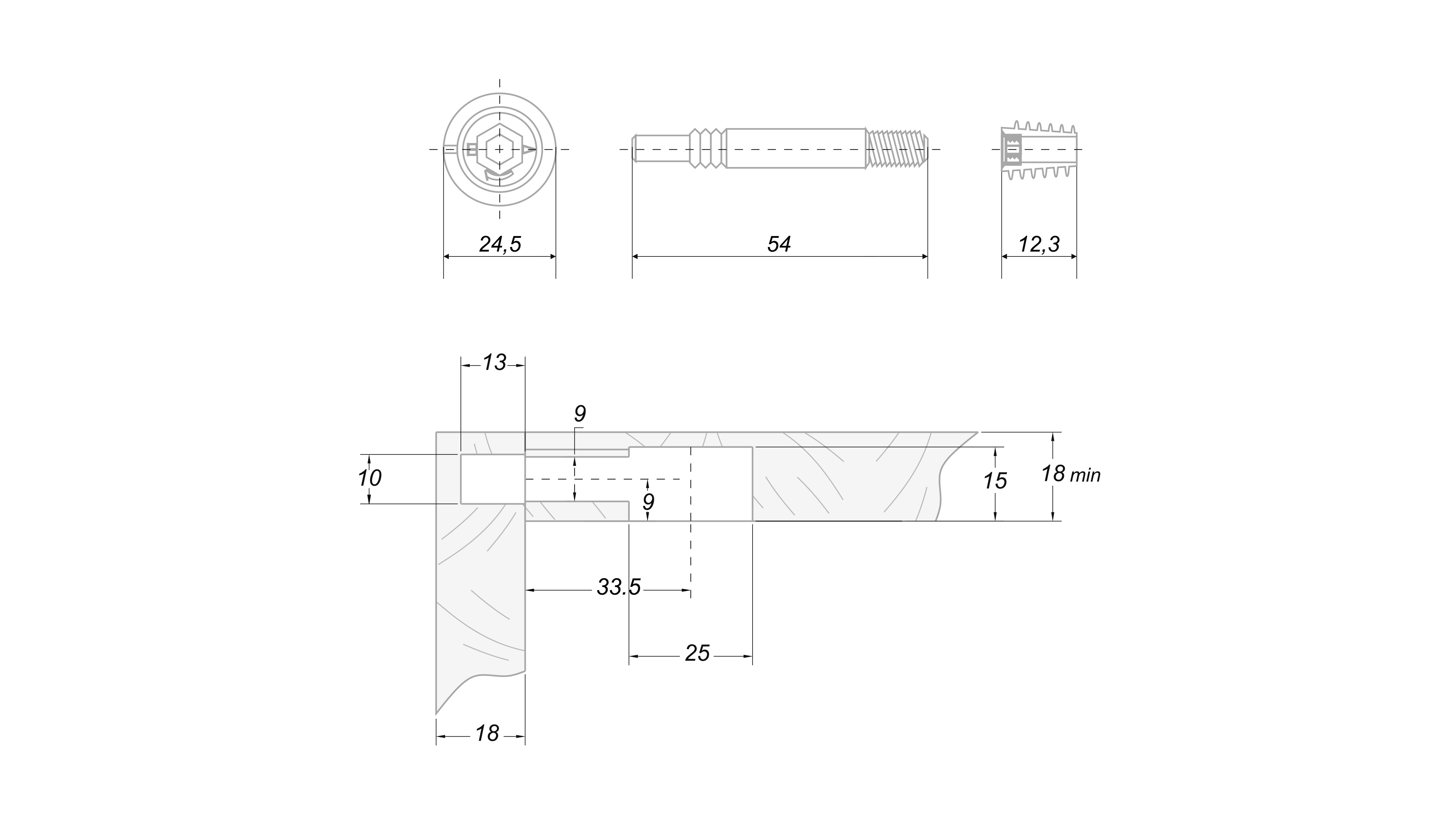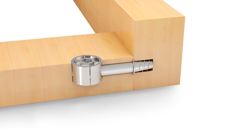 Модель имеет продуманную конструкцию крепежа с крупным шагом резьбы, наличием металлической футорки и трёхсоставным эксцентриком и оснащена шнековым способом затягивания, который обеспечит надёжную фиксацию мебели на протяжении всего срока её эксплуатации: при сборке мебели потребуется только один раз затянуть эксцентрик с усилием 2-3N.
