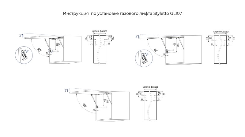 STYLETTO 107 GL107 — стильный фрикционный газовый лифт быстрого монтажа для открывания фасада вверх.