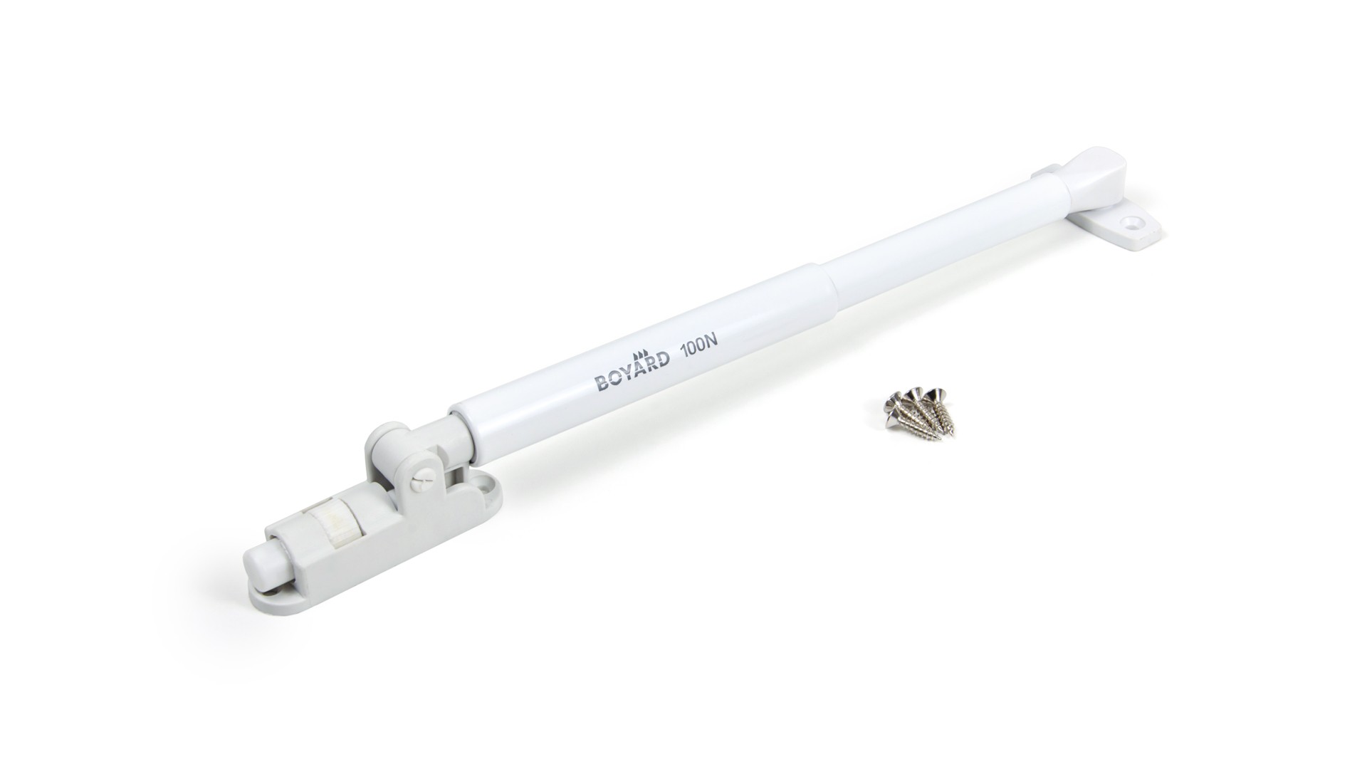 OZON GL110 — газовый лифт для фрикционного открывания фасада вверх, оснащён встроенным амортизатором для плавного и бесшумного закрывания с удобного угла, который возможно настроить под себя.