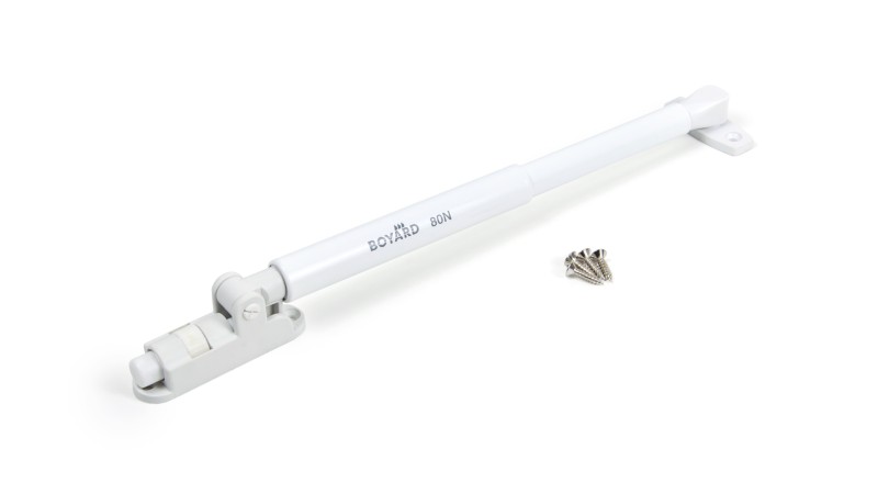 OZON GL110 — газовый лифт для фрикционного открывания фасада вверх, оснащён встроенным амортизатором для плавного и бесшумного закрывания с удобного угла, который возможно настроить под себя.