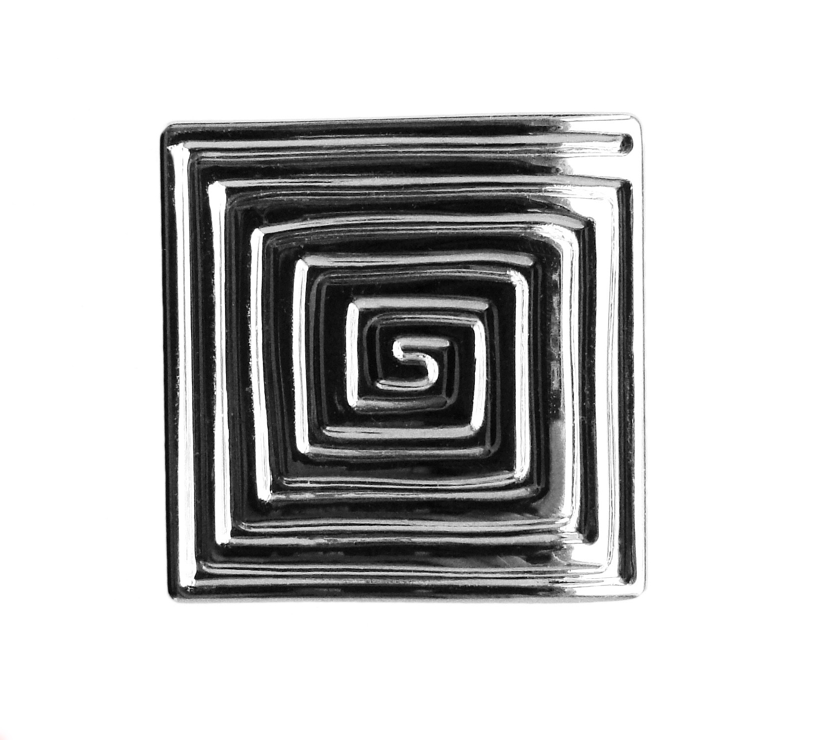 RC090CP.4 - современная геометричная кнопка с этническим настроением. Холодная строгость ее линий прорезана спиралевидным греческим узором, благодаря чему ручка выглядит динамично и живо в любом интерьере. Форма кнопки на первый взгляд очень простая, но на самом деле верхняя площадка имеет легкий изгиб для того, чтобы пальцы могли удобнее обхватить квадратную ручку.