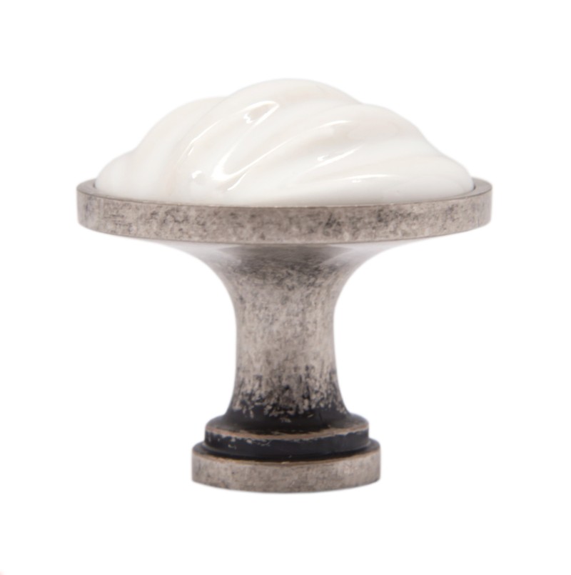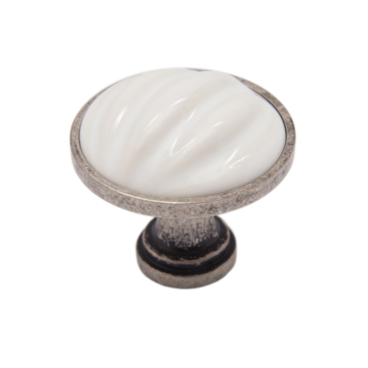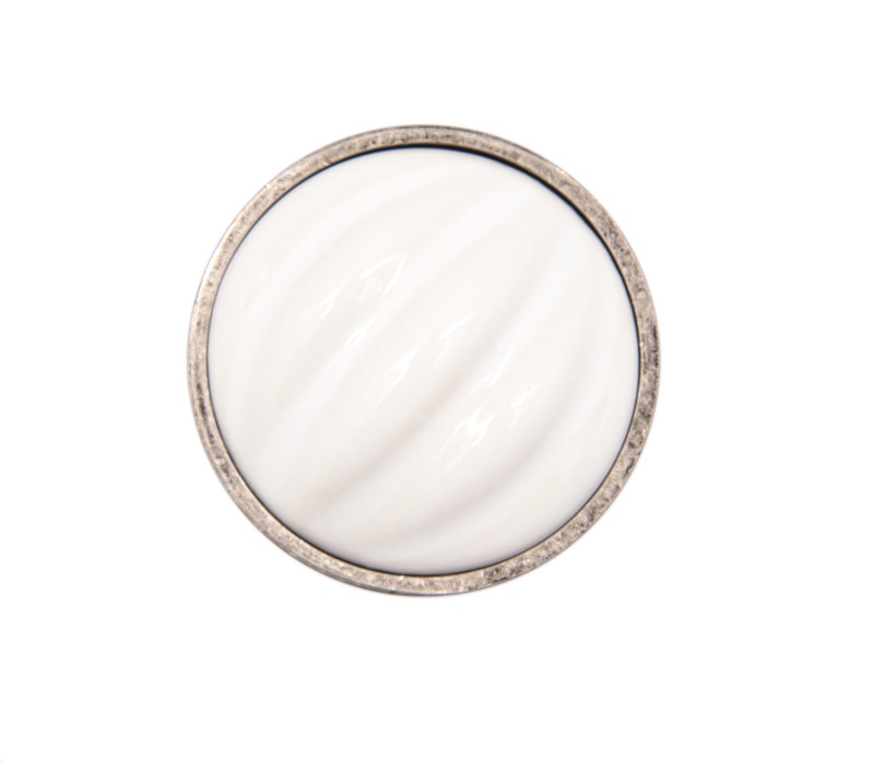 Ручка-кнопка TIFFANY с белой керамической вставкой — функциональная деталь и украшение мебели в классическом и неоклассическом стилях. Благородная керамика, деликатно обрамленная металлом в цвете Черненый старинный цинк (BAZ) или Старинная латунь (АВ), позволяет создавать яркие акценты на темной мебели. Модель, благодаря дизайну с плавными линиями и ножкой выверенной высоты, очень эргономична. Гладкая, слегка волнистая поверхность модели создает неповторимые тактильные ощущения. К кнопке TIFFANY хочется прикасаться вновь и вновь!