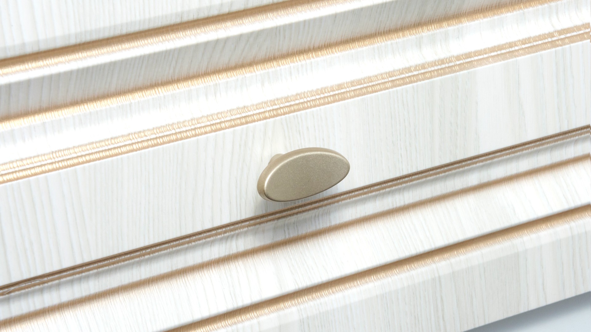 Изящная строгая овальная форма ручки-кнопки ФРАНЧЕСКА обладает анатомичным углублением под палец для удобства захвата.
