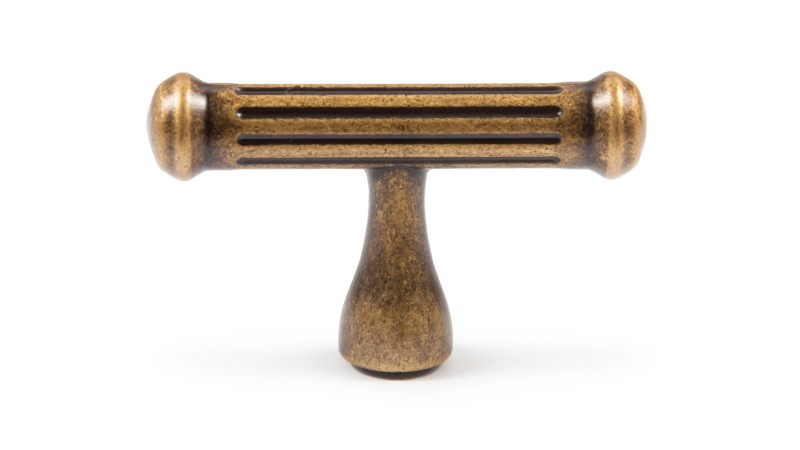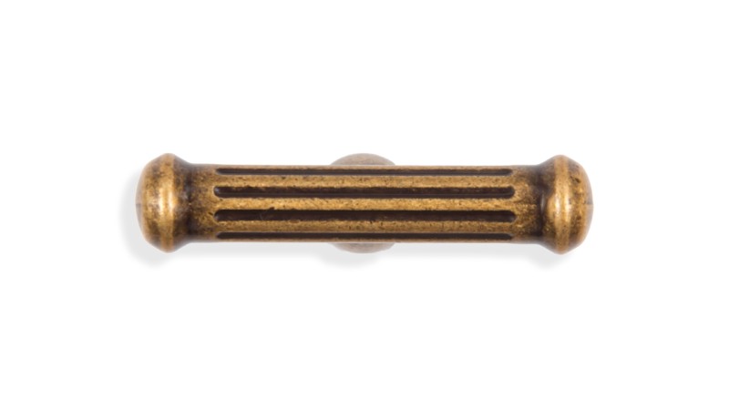 Кнопка РИГАТА RC531 отличается эргономичной Т-образной формой с рельефной проработкой, напоминающей поверхность античных колонн. Ручка выполнена в стиле итальянской колониальной классики и является фурнитурной парой для скобы RS531. В паре со скобой или как самостоятельная фурнитурная единица кнопка будет хорошо смотреться на классических фасадах с фрезеровкой и патиной, а в тёмном цвете АС (старинная медь) — на фасадах мебели стилевого направления лофт.