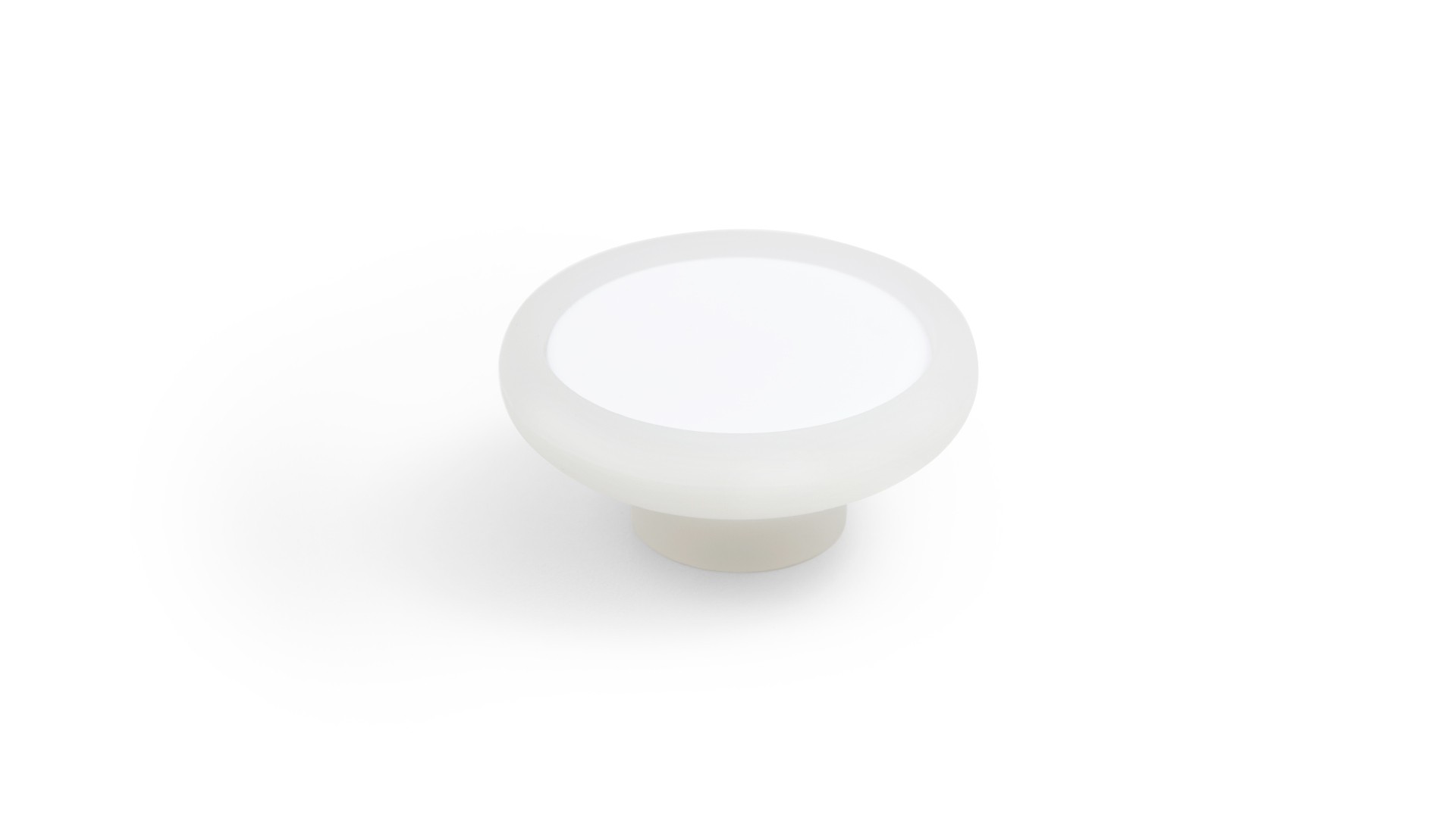 LOLLIPOP RC600 — детская ручка-кнопка из прочной и безопасной для ребёнка конструкции: модель имеет основу для крепления из цинк-алюминия, на которую надевается мягкая насадка из пищевого силикона. Металлическая резьба основы не деформируется при сильной затяжке, что гарантирует прочное и устойчивое соединение ручки с поверхностью фасада. Изделие в виде круга обрамлено полупрозрачными вставками, обеспечивая надёжный эргономичный хват даже детскими пальчиками.