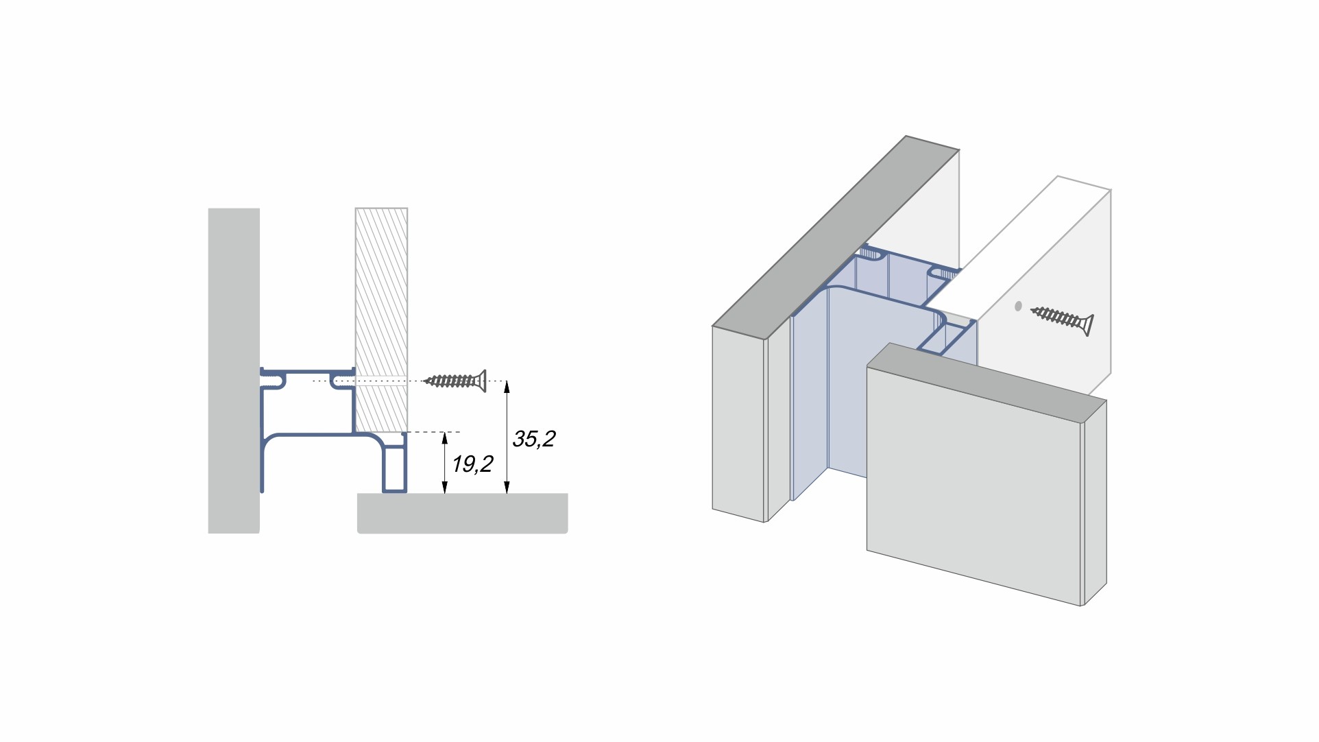 RP054 устанавливается сбоку: с левого или правого края мебельного модуля. Модель станет отличным решением для минималистичных гарнитуров для кухонь, спален, прихожих, гостиных. Для шкафов-пеналов и встраиваемых холодильников.