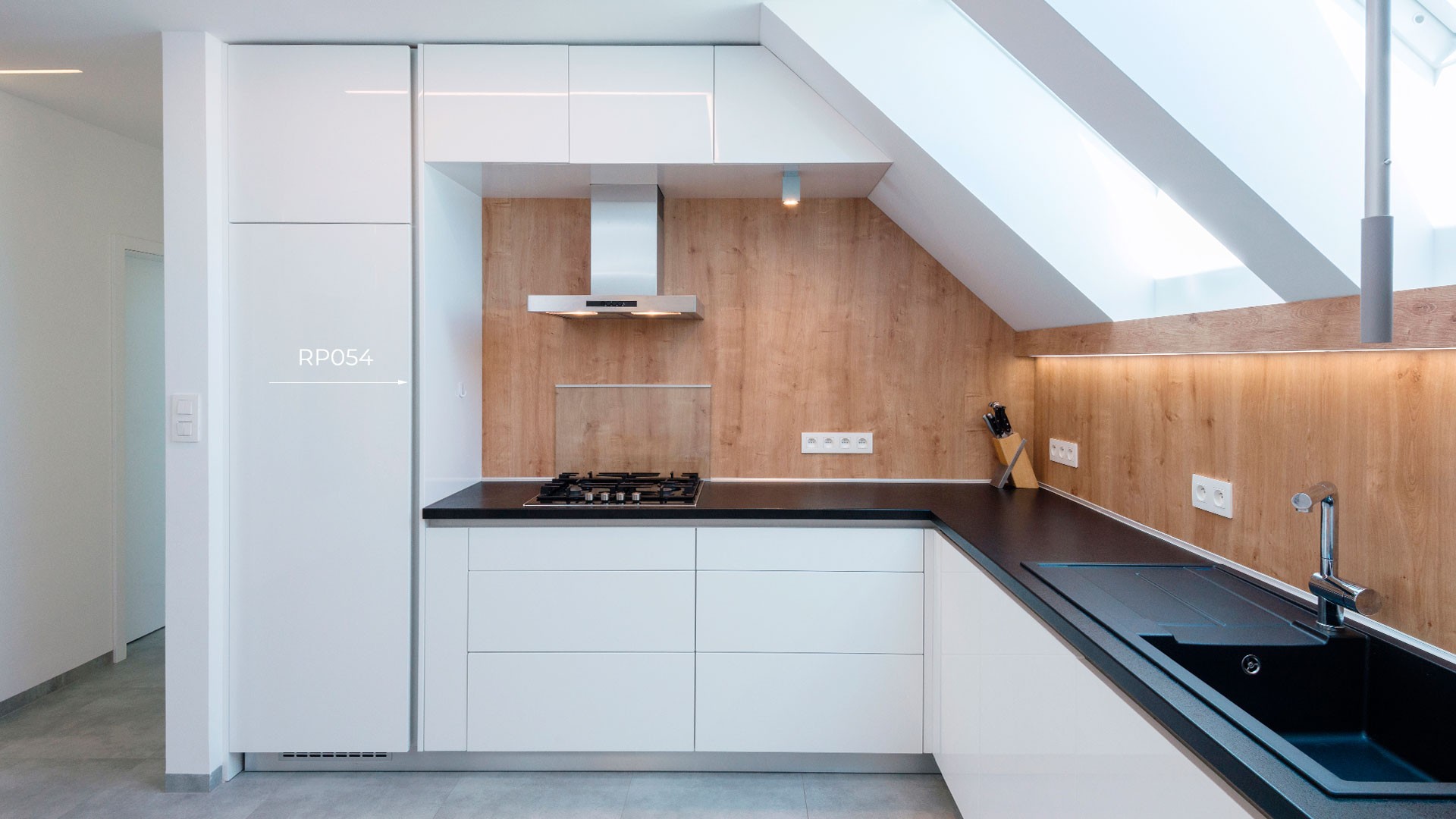 RP054 устанавливается сбоку: с левого или правого края мебельного модуля. Модель станет отличным решением для минималистичных гарнитуров для кухонь, спален, прихожих, гостиных. Для шкафов-пеналов и встраиваемых холодильников.