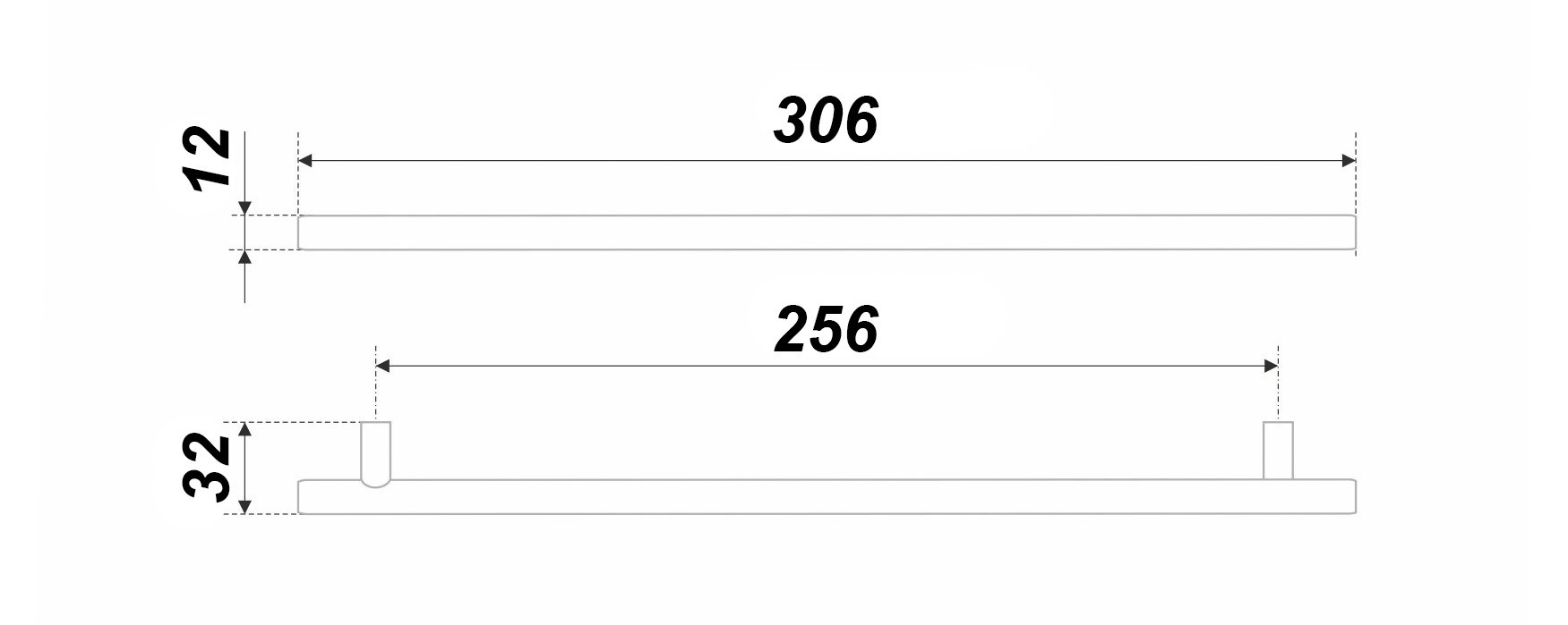 Модель предложена в широком диапазоне длин и покрытий. Ручки в размерах 960, 1152 мм отлично смотрятся на высоких вертикальных распашных фасадах, а варианты в средних длинах подходят и для вертикального, и для горизонтального расположения.