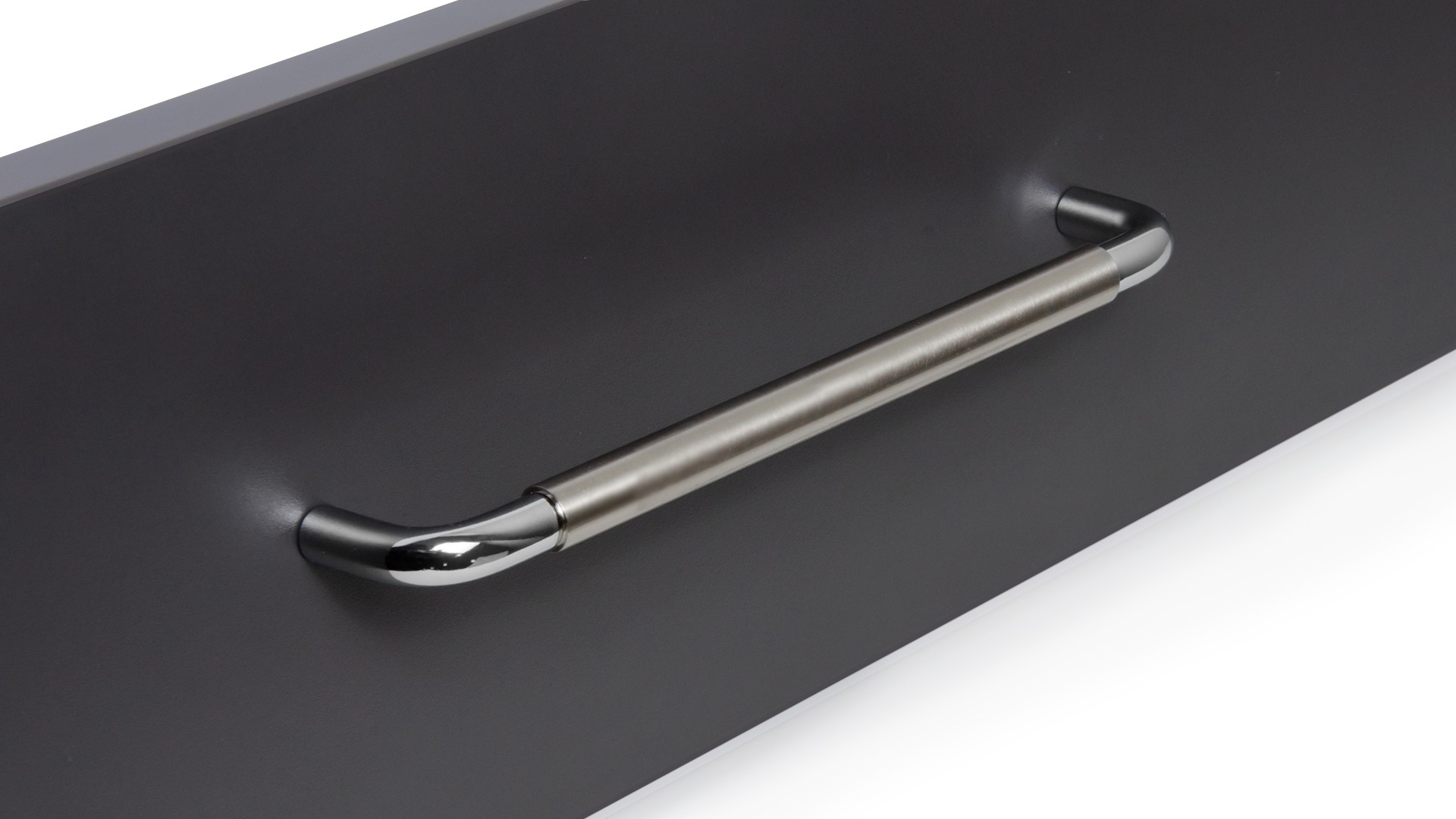 Ручка представлена как в небольших размерах до 160 мм, так и в форм-факторе 224 мм для установки на широкие фасады.