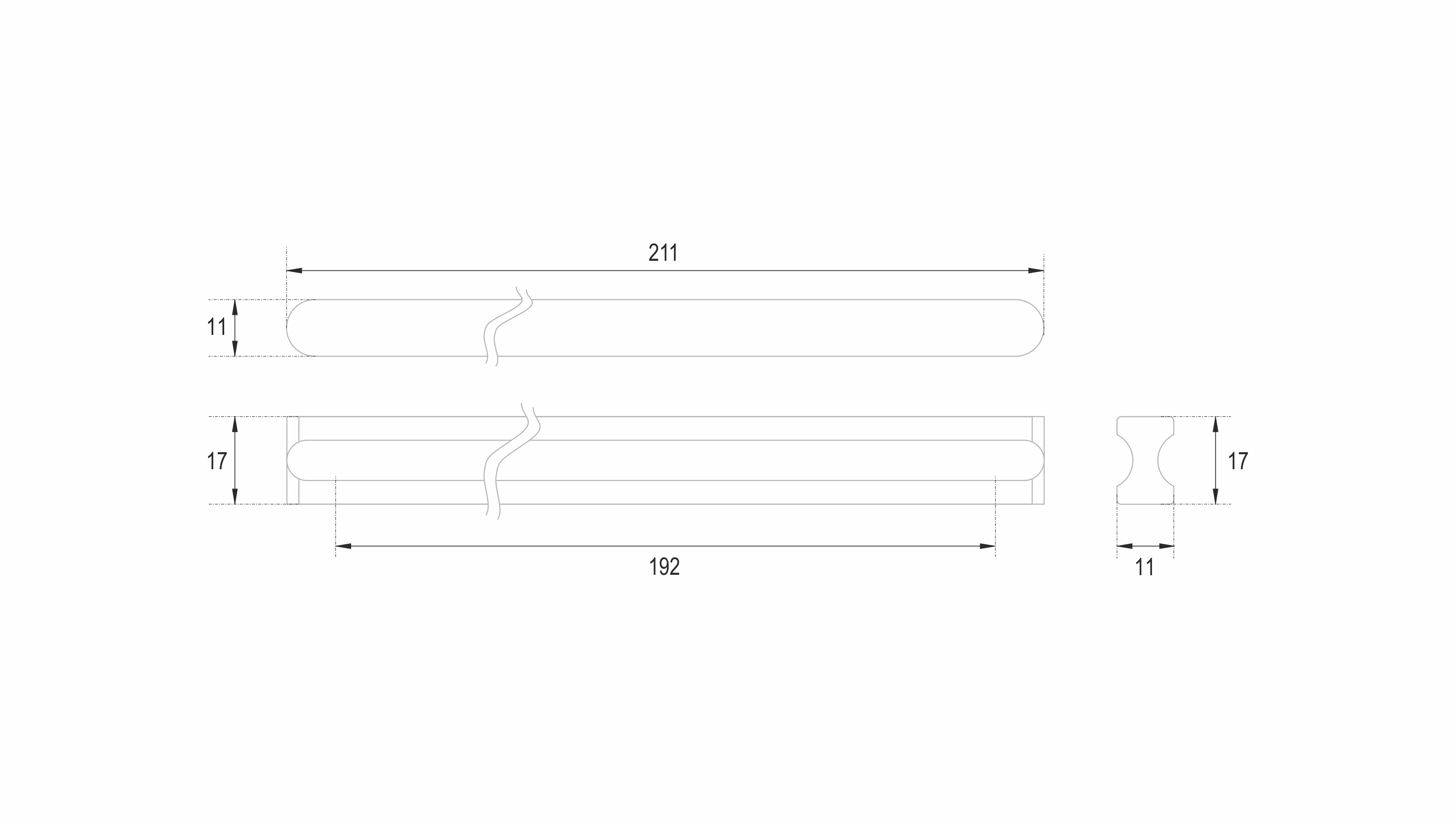 Ручка представлена как в небольших размерах от 128 мм, так и в форм-факторе 960 мм. VOLNA RS065 можно устанавливать не только вертикально, но и горизонтально, для завершённого образа мебельного гарнитура.