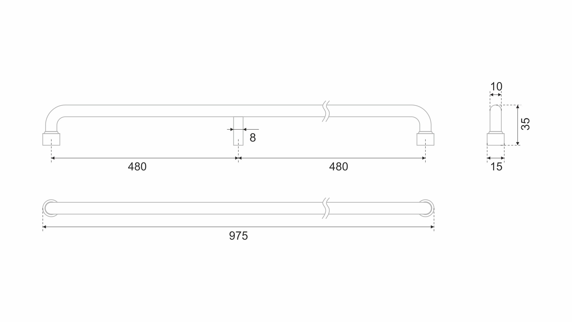 Для установки CONTUR необходимо надеть наконечники на ручку. Ручки размером 512 мм и 960 мм имеют дополнительную предустановленную и фиксированную центральную опору без наконечника.