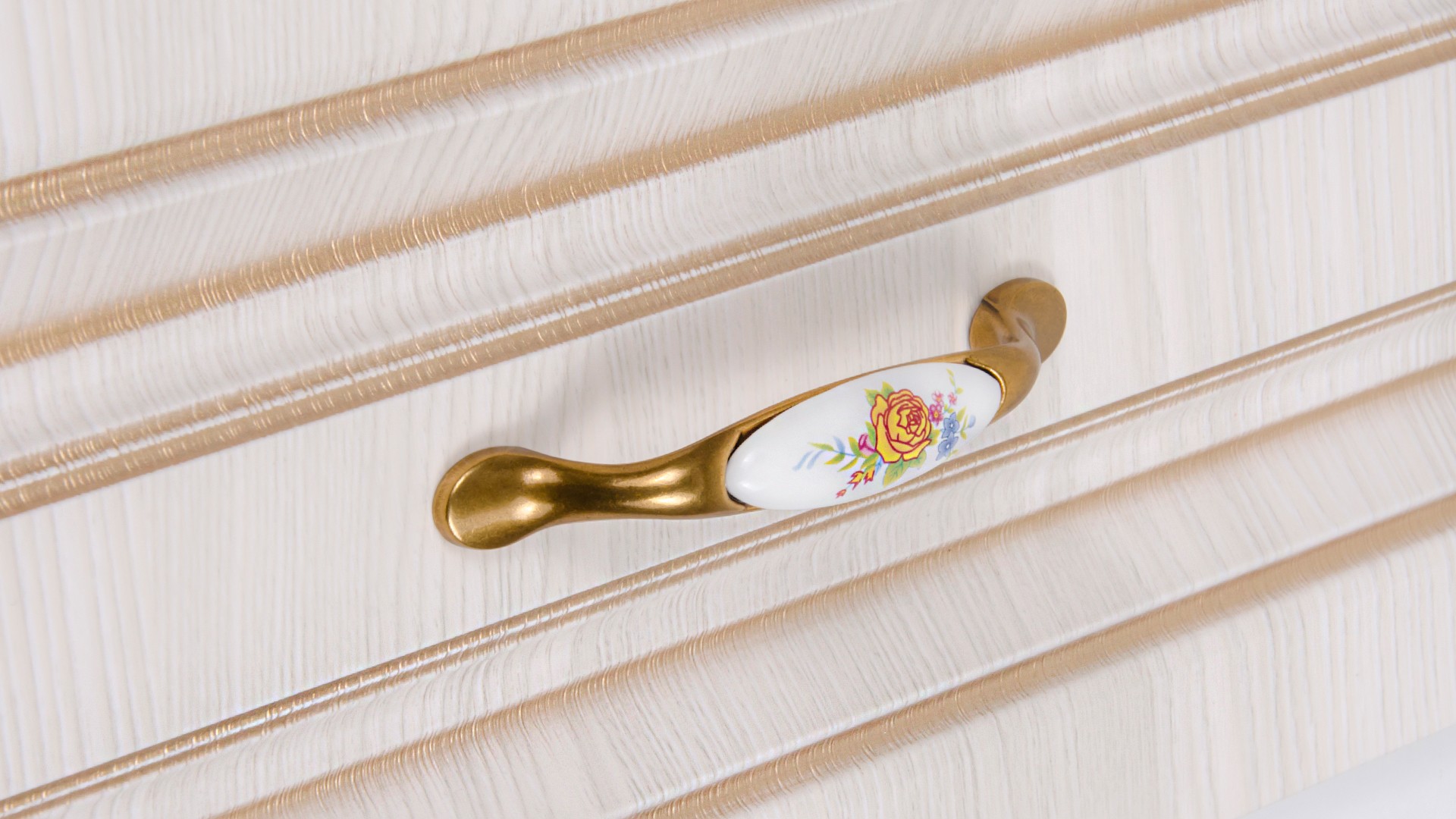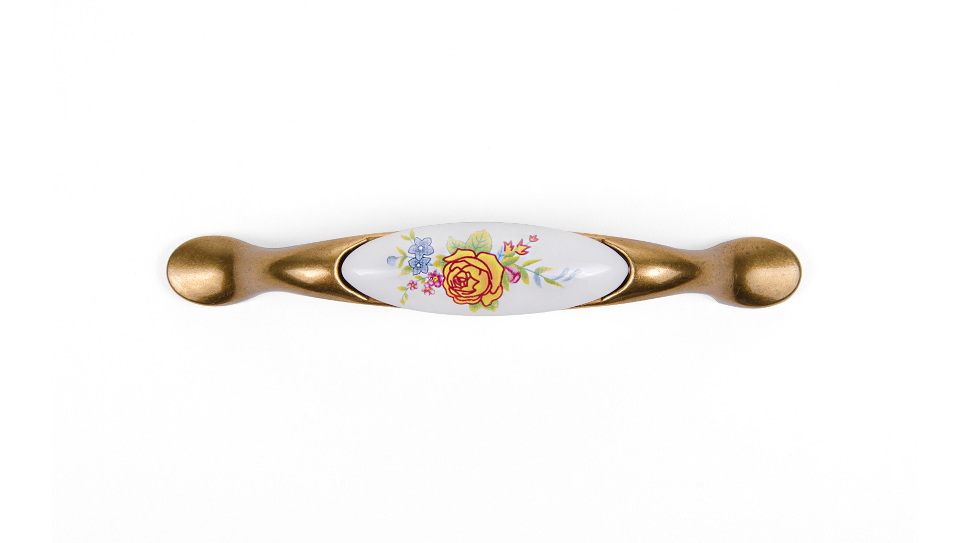 RS113 – модель, выполненная из белоснежной керамики в сочетании с металлической основой в покрытии «Старинная латунь», будет гармонично смотреться на фактурных и гладких фасадах теплых, натуральных оттенков. Ручка идеально встанет на мебель в неоклассическом и романтическом стилях. Приятная на ощупь, благородная керамика, эргономичная форма с плавными линиями делают модель удобной в ежедневном использовании.