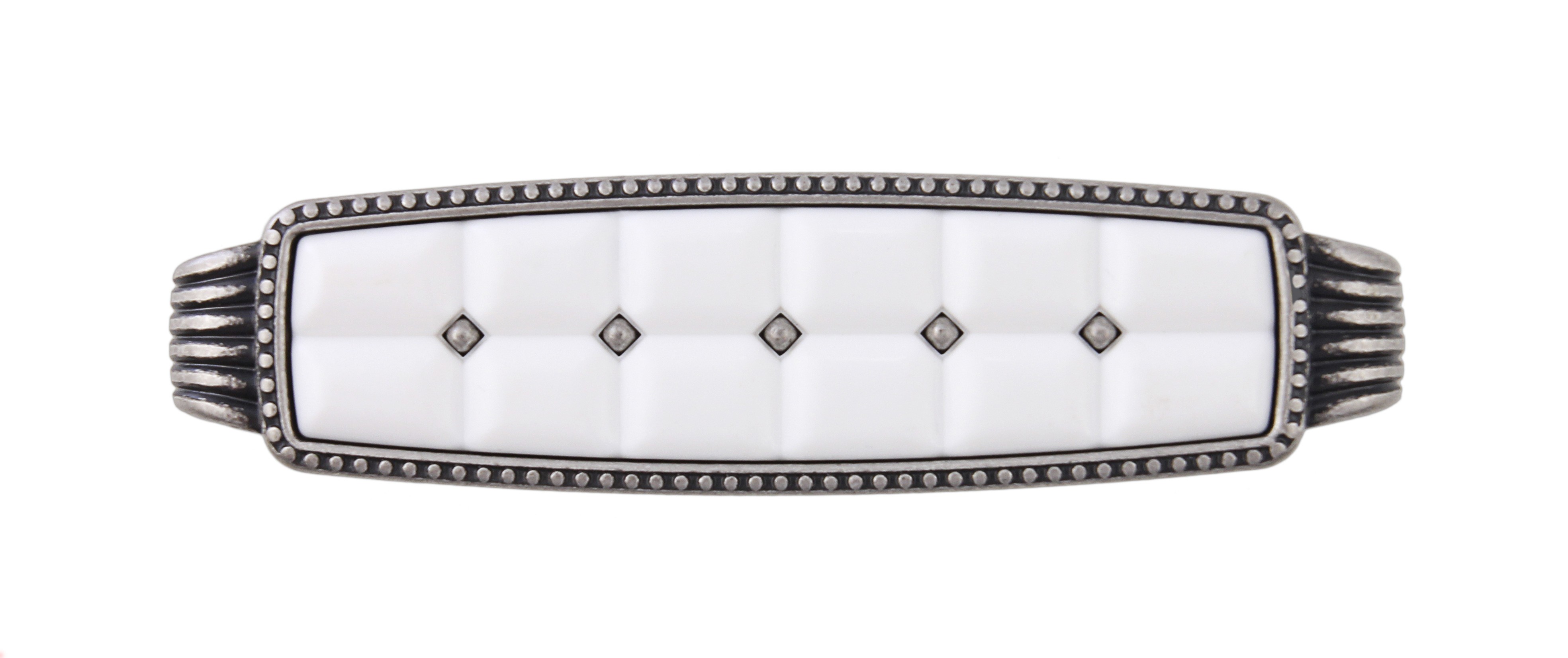 BELLE RS122 – ручка для романтичных натур. В ней в равной степени присутствуют нотки кокетства и нежности, благородства и изящества. Гладкая белая вставка, обрамленная “Матовой старинной латунью ” или “Черненым старинным цинком” – к этой ручке хочется прикоснуться, примерить ее на гарнитур и насладиться эстетикой винтажной и романтичной мебели. Форма ручки напоминает о роскоши будуаров – это неувядающий тренд в дизайне интерьеров, любимый и в нашей стране.