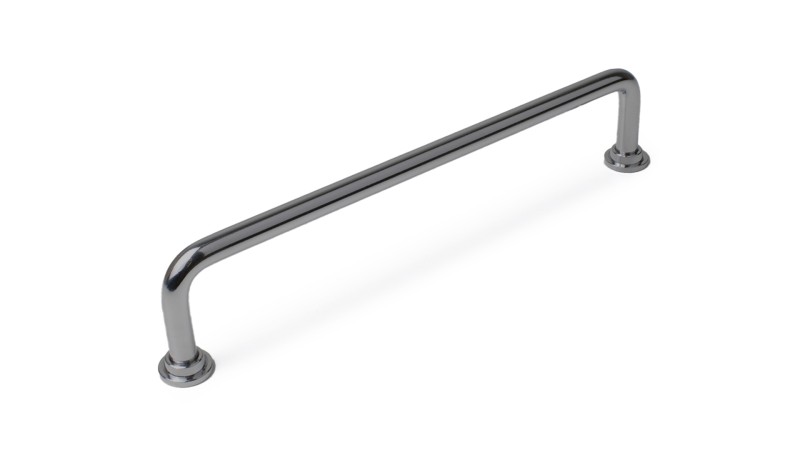 Особенность ручки — съёмные наконечники. С ними модель выглядит как современная прочтение полюбившихся «скандинавских» ручек. Но можно установить и без них – получится трендовый образец универсального стилевого минимализма для мебели любых современных интерьеров.