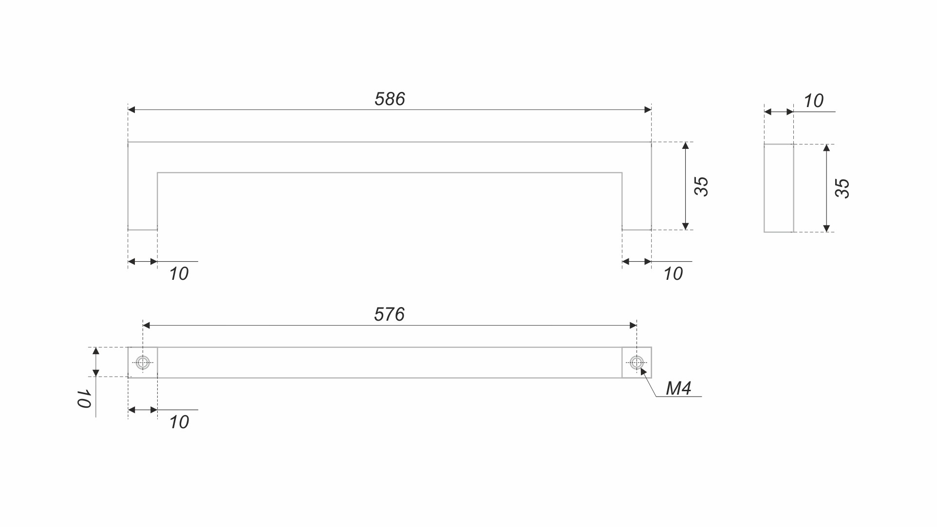 Ручки с МЦ 480 мм и МЦ 576 мм могут быть также установлены горизонтально на широких и габаритных выдвижных ящиках.