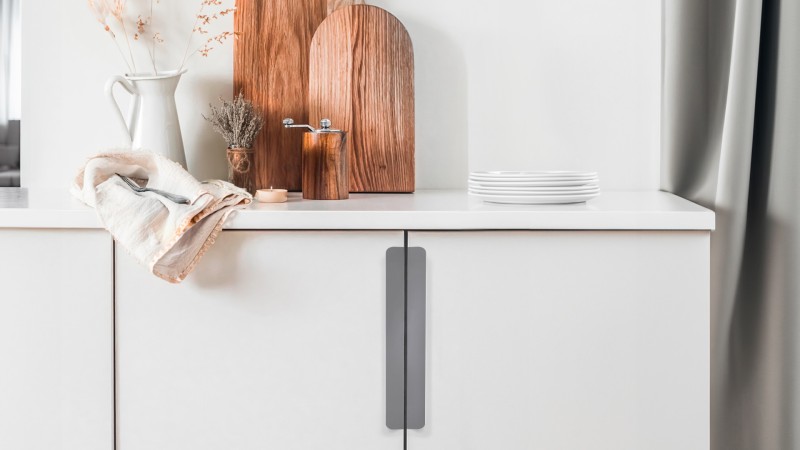 TICK RS156 — лаконичная ручка-скоба, которая выглядит как торцевая. Предназначена для установки на фасады толщиной от 16 мм.