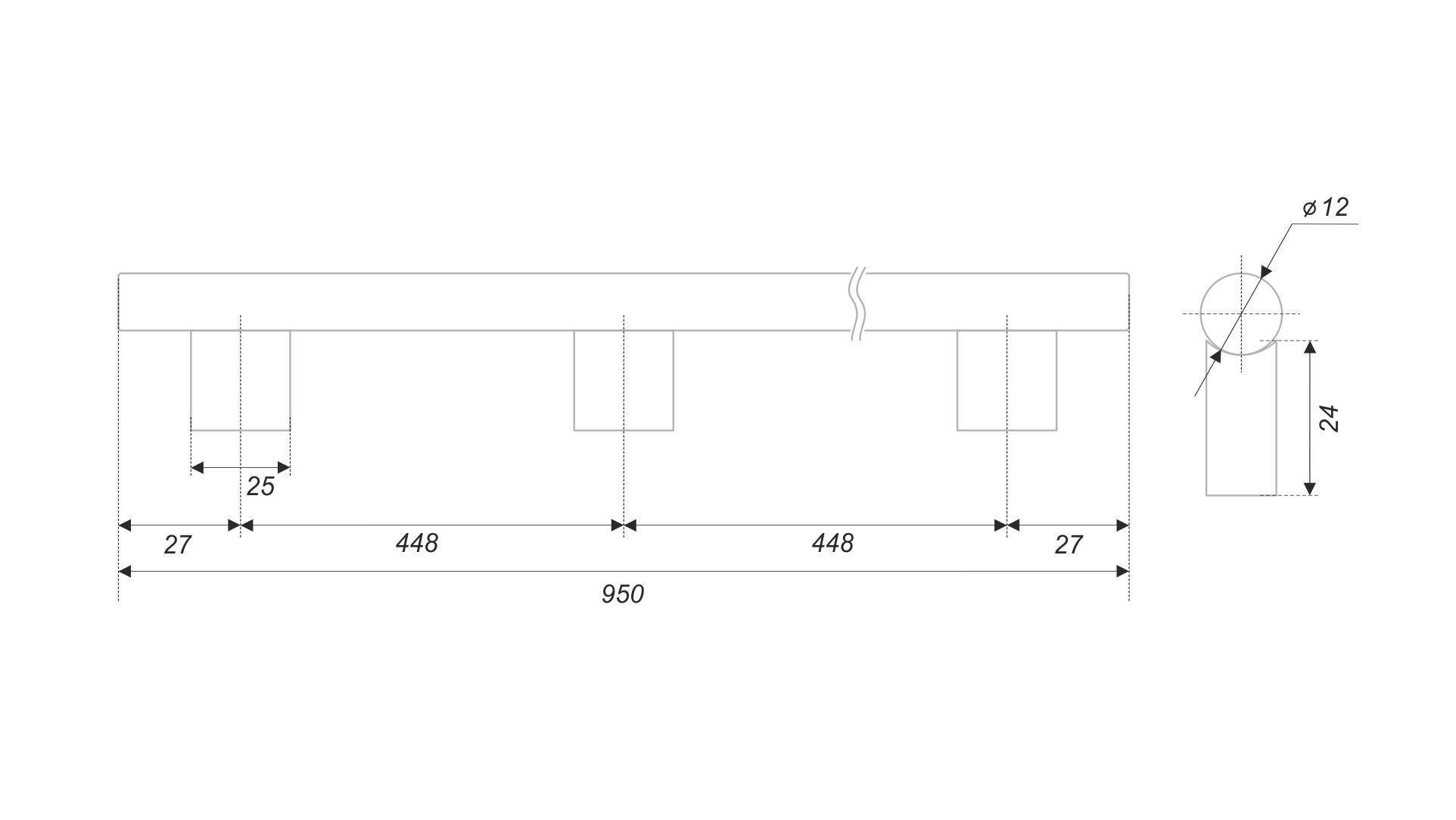 ROCK RS325 — цельная ручка-скоба, в которой яркое рифление алюминиевого прутка сочетается со стильными гладкими ножками.