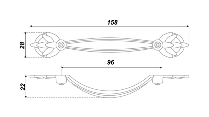 RS418 - создана для классической, романтичной мебели разных форм: комодов, прикроватных тумб, гарнитуров в прихожую, витрин. Ручка представлена в состаренных оттенках. Модель хорошо сочетается с фасадами с текстурой натурального дерева.