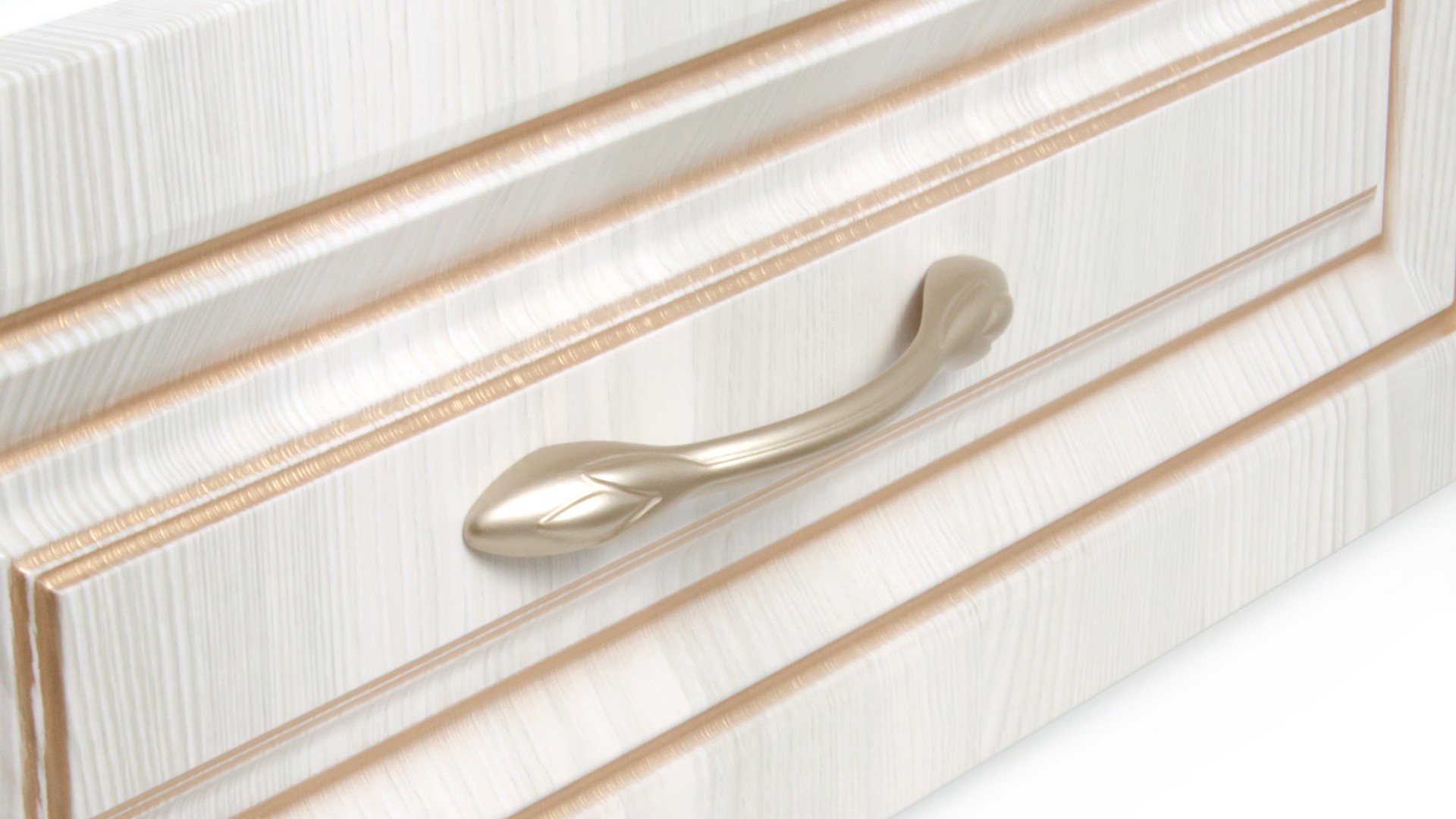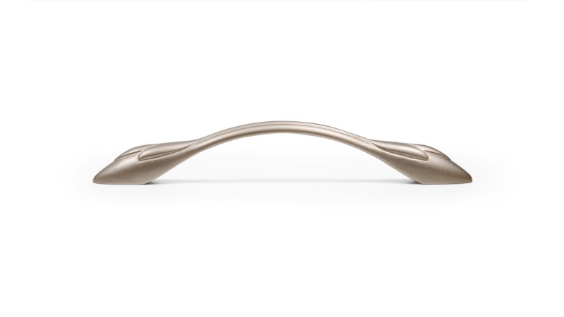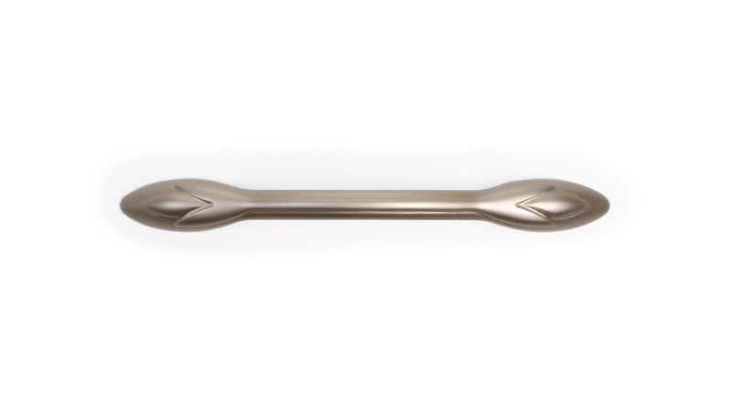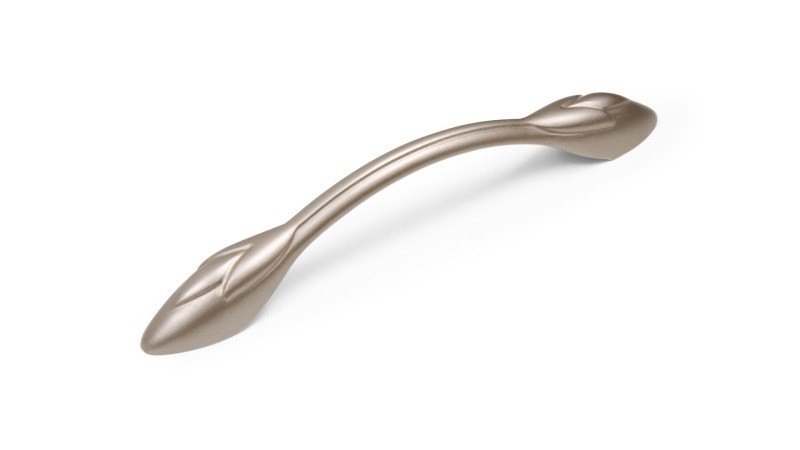 Ручка с растительным рисунком будет хороша на натуральных древесных фасадах или фасадах в покрытии с фактурой дерева, на мебели с фрезеровкой и даже патиной.