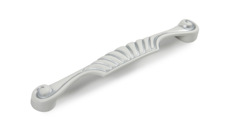 Ручка будет гармонично смотреться на классическом фасаде с ажурной фрезеровкой. Палитра покрытий ручки – старинное серебро и нежный белый в золотой и серебряной патине – прекрасно подойдёт под фасады натуральных древесных оттенков от тёплого коричневого до светлого ореха.