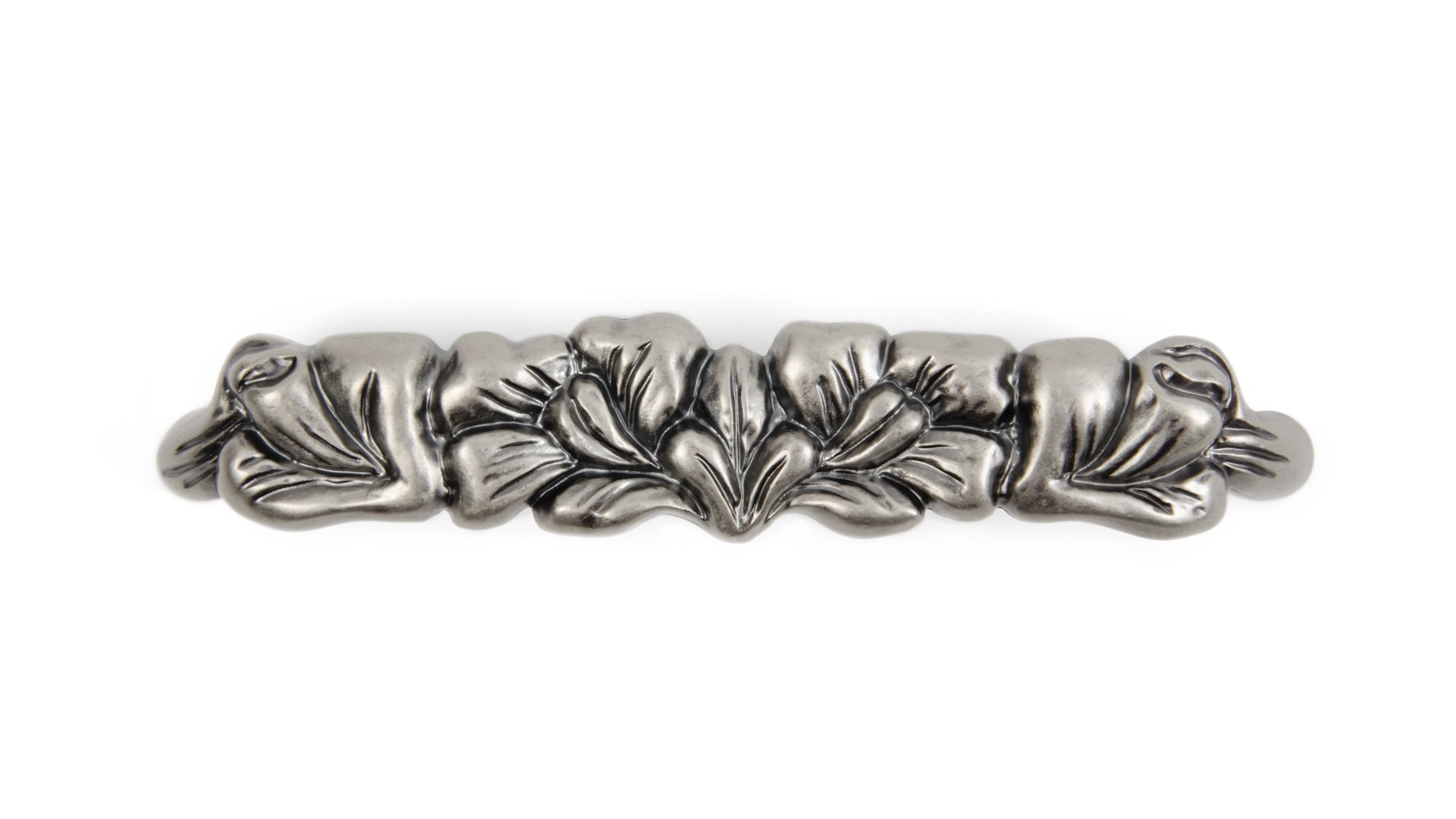 Мебельная ручка ГАРДЕН RS510 итальянской коллекции Фамилия выполнена в стиле тосканской средиземноморской классики, которая черпает вдохновение в природной красоте пышной южной растительности, моря, солнца. Сложный дизайн модели с флористическими мотивами, мастерски отточенные линии украсят мебельный гарнитур в классическом стиле. Ручки будут особенно красиво смотреться на фасадах с фрезеровкой тёплой, либо холодной древесной структуры, с патиной или без. Скобы ГАРДЕН будут также уместны на гарнитурах прованс пастельных оттенков.