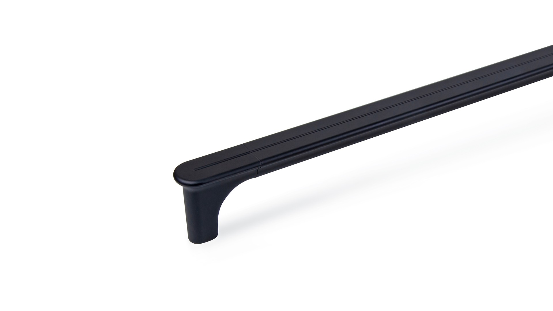Ручка выполнена в размерах 320 мм, 480 мм и 960 мм. «Метровая» версия КРЕАТИКА разработана специально для вертикального размещения на габаритных фасадах. Скобы с МЦ 320 мм и 480 мм могут быть установлены как вертикально на высоких шкафах, так и горизонтально – на широких модулях.
