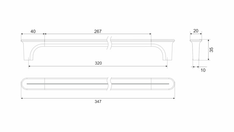 Ручка выполнена в размерах 320 мм, 480 мм и 960 мм. «Метровая» версия КРЕАТИКА разработана специально для вертикального размещения на габаритных фасадах. Скобы с МЦ 320 мм и 480 мм могут быть установлены как вертикально на высоких шкафах, так и горизонтально – на широких модулях.