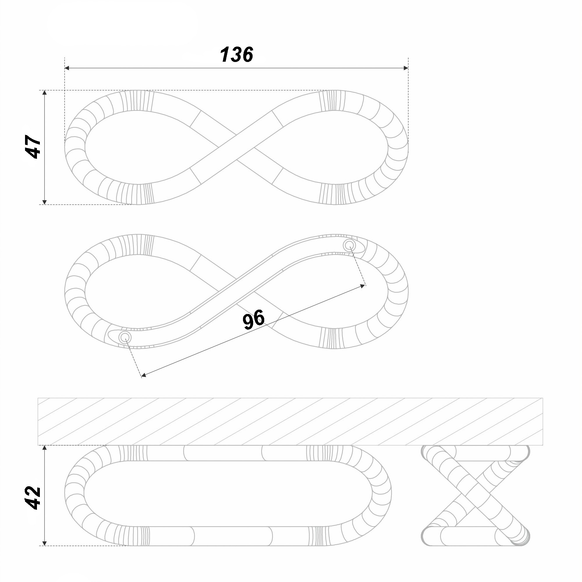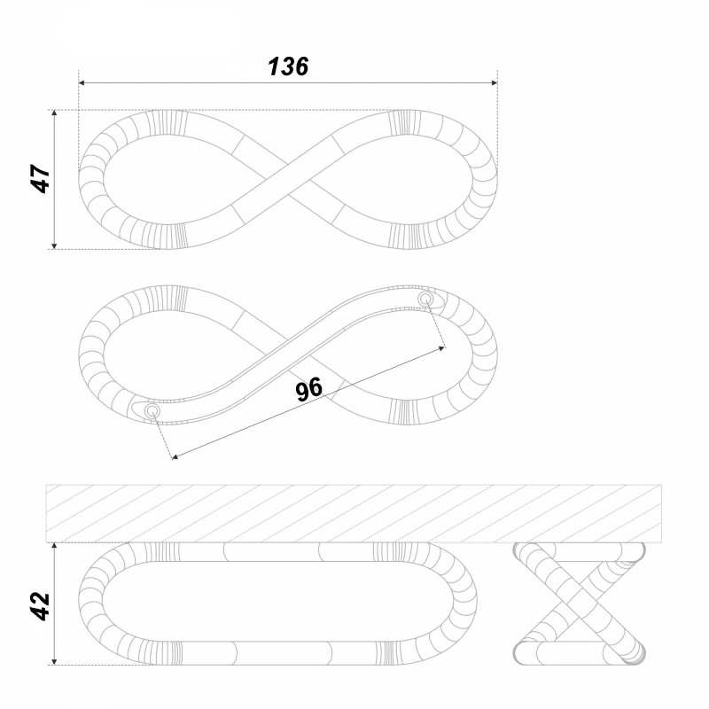 Оригинальная и воздушная ручка «8» в форме знака бесконечности – торжество высокого стиля, свежее дыхание современности и нетривиальный способ выразить индивидуальность мебельного гарнитура. Будто бы застывшая в лучшей версии себя, модель открывает новые перспективы для мебели, делает пространство осмысленным и завершенным.