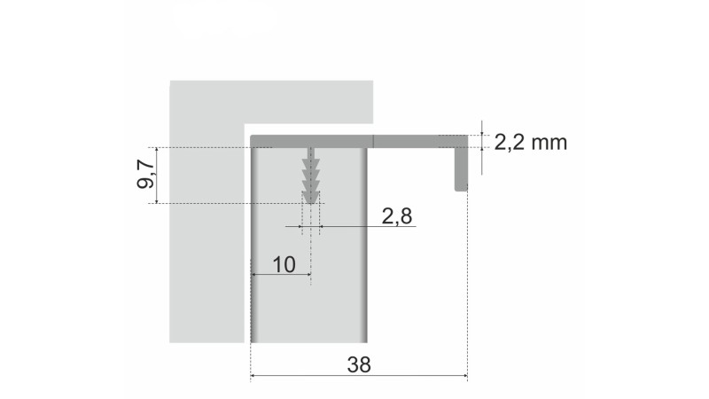 RT009 подходит для установки на фасады толщиной до 18 мм. Для установки необходимо профрезеровать паз в торце фасада.