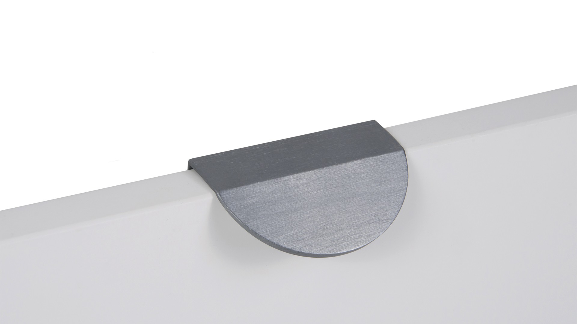 ВИВА RT012 — торцевая ручка из алюминия, с геометричным выступом в форме полукруга. Для удобства захвата на ручках увеличен отступ язычка, а на его внутренней стороне предусмотрено рифление. Устанавливается наложением, подходит для фасадов толщиной до 18 мм.